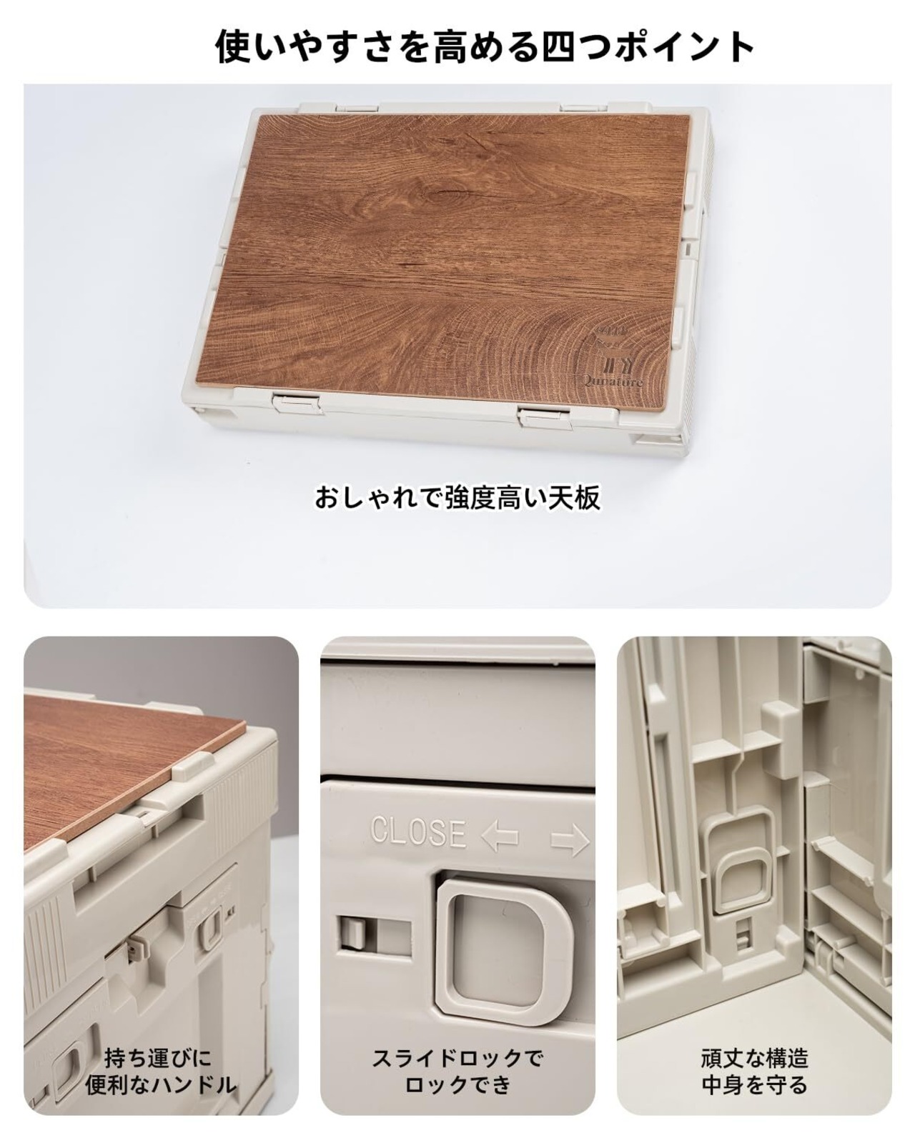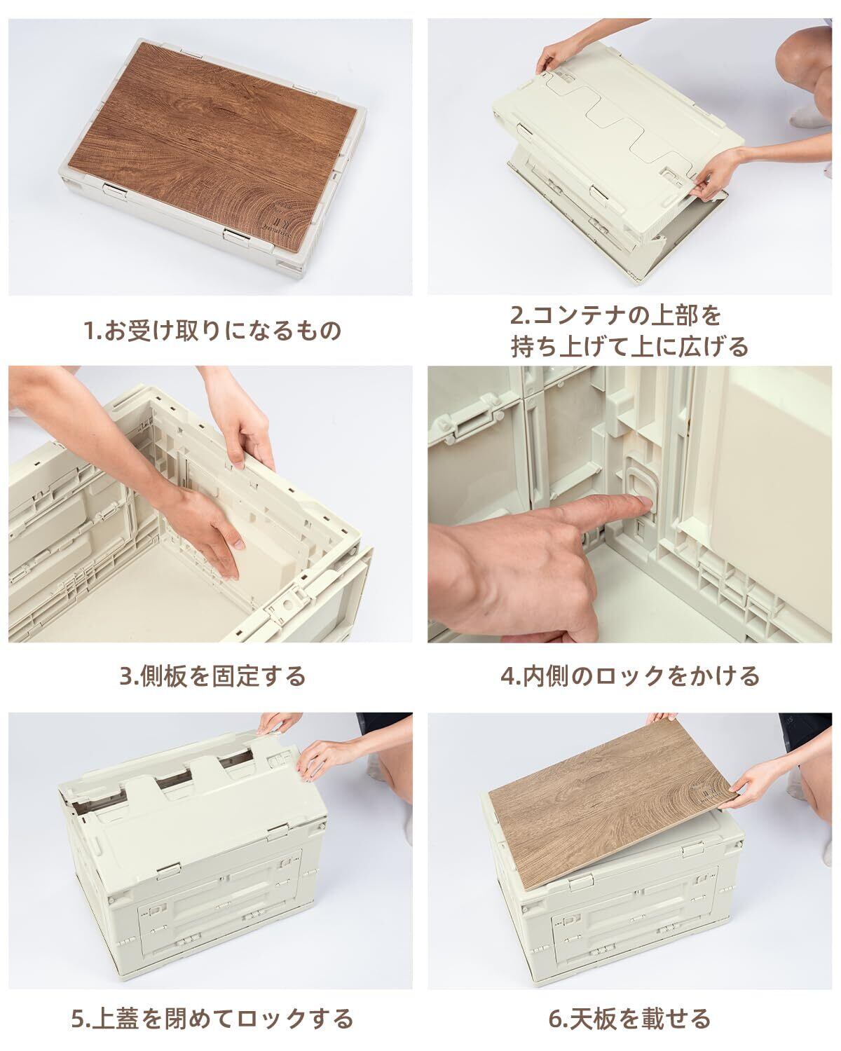 【多機能】内部の耐荷重は約30kg、外部の耐荷重は約50kg、優れた強度や安定感を発揮、快適なキャンプライフをサポートします。天板をセットして、キャンプで一時的な食卓を必要としたり、座る場所や休息用の場所が急に必要になった時、トレーやまな板、椅子、テーブル代わりに使える可能、利便性に優れています。しかし、収納物の重さが加わったりキャンプ用コンテナ上で動いたりするのも考慮しながら、耐荷重に余裕を持たせるのがおすすめです。