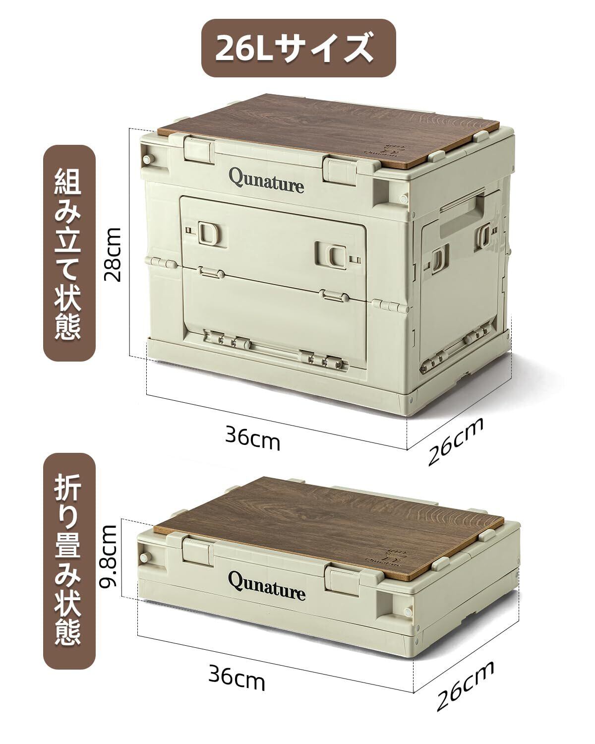 【特価商品】Qunature 収納ボックス 折り畳み キャンプ アウトドア用ボックス 収納 蓋付き 5面開き 全方向から取り出せる 大容量 収納ケース 強い耐荷重 積み重ね 組立簡単 アウトドア キャンプサイト 車 自宅 オフィス用 オリコン(26L,36*26*28cm,2個)