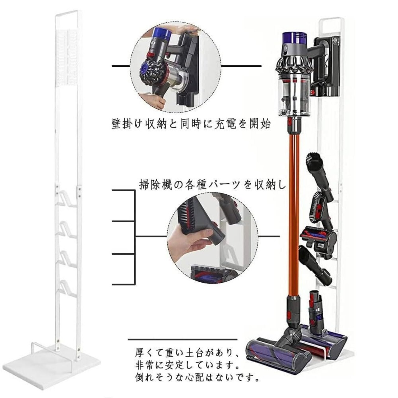 【収納が便利です】掃除機の各種パーツを収納し、様々なヘッドや部品を掃除機本体と一緒に収納出来ます。ダイソンコードレス掃除機専用スタンド、簡単に収納可能です。掃除機の本体を収納スタンドの上部に置き、掃除機の付属品も収納スタンドの上に置くことができるので、 落下や紛失の心配がなく、収納スペースも取りません。