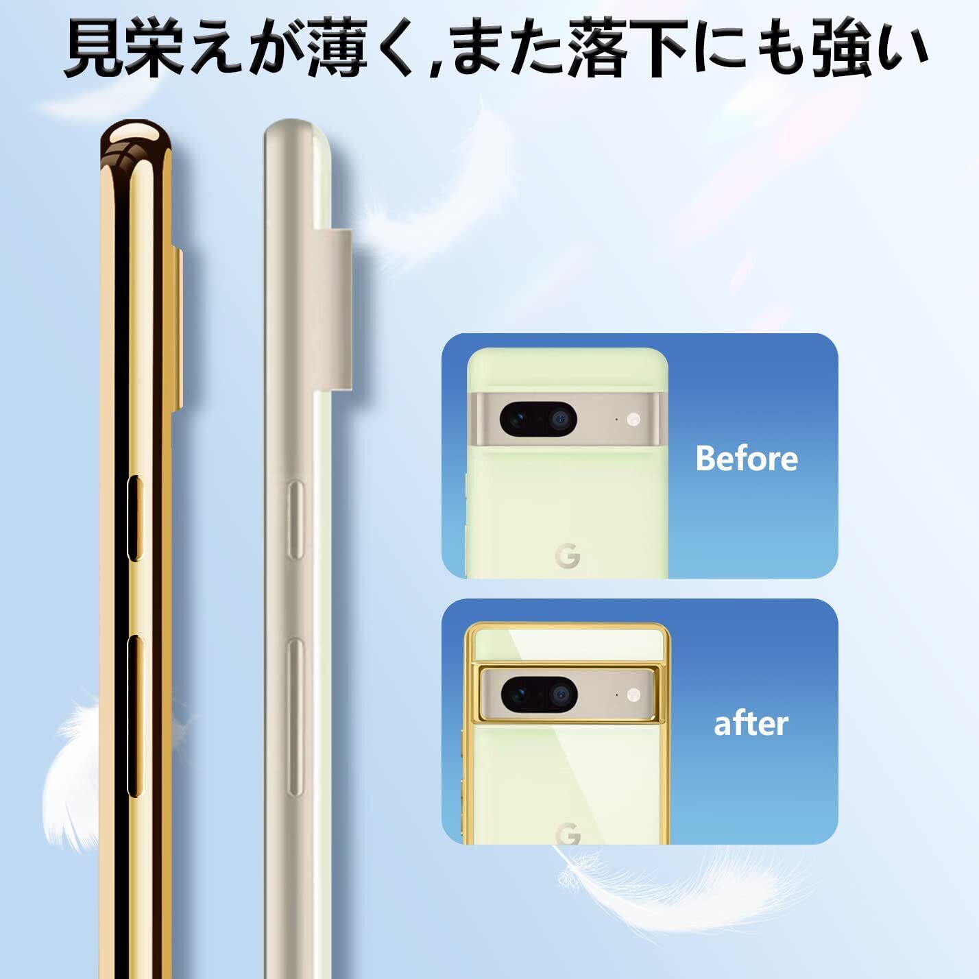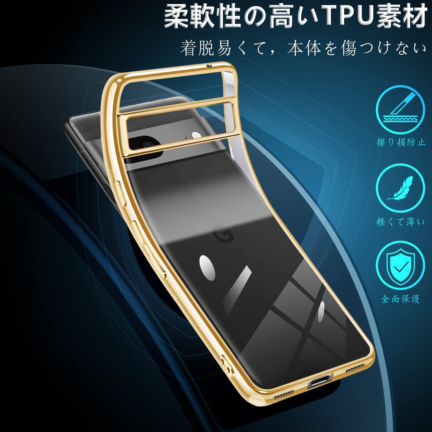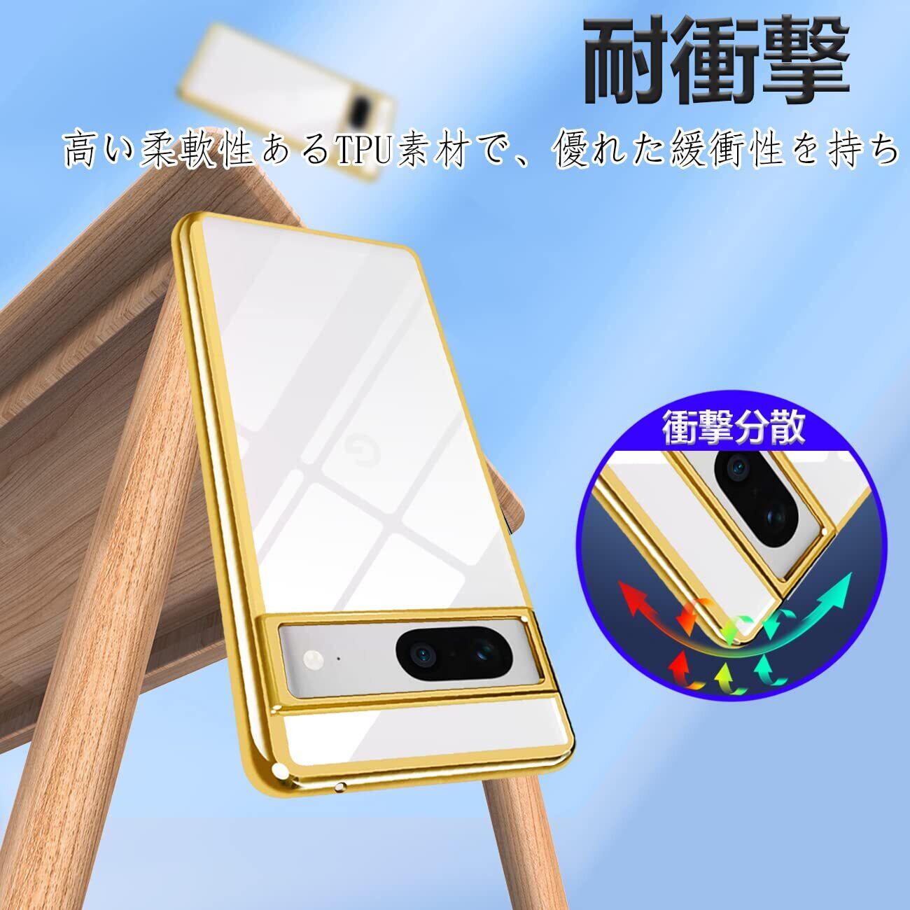 Google Pixel7 ケース クリア TPU 透明 薄型 軽量 カバー スマホケース 耐衝撃 メッキ加工 ソフトケース 人気 カバー ワイヤレス充電対応(ゴールド)