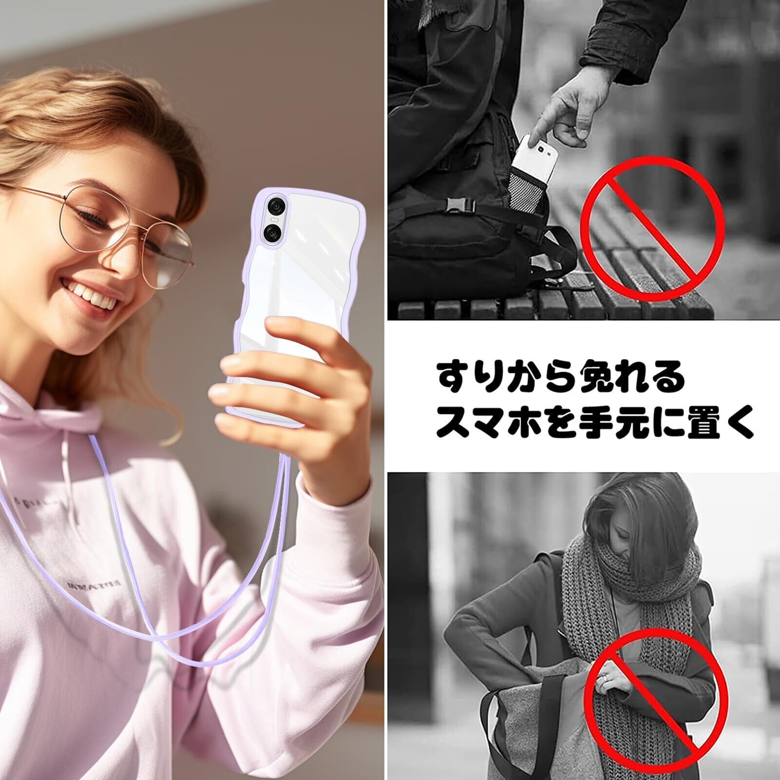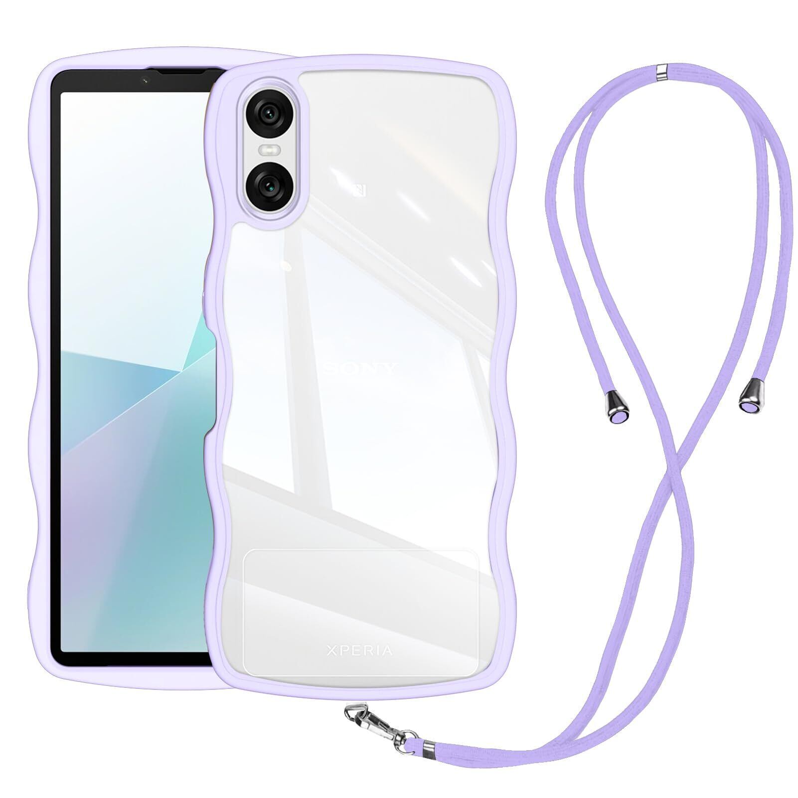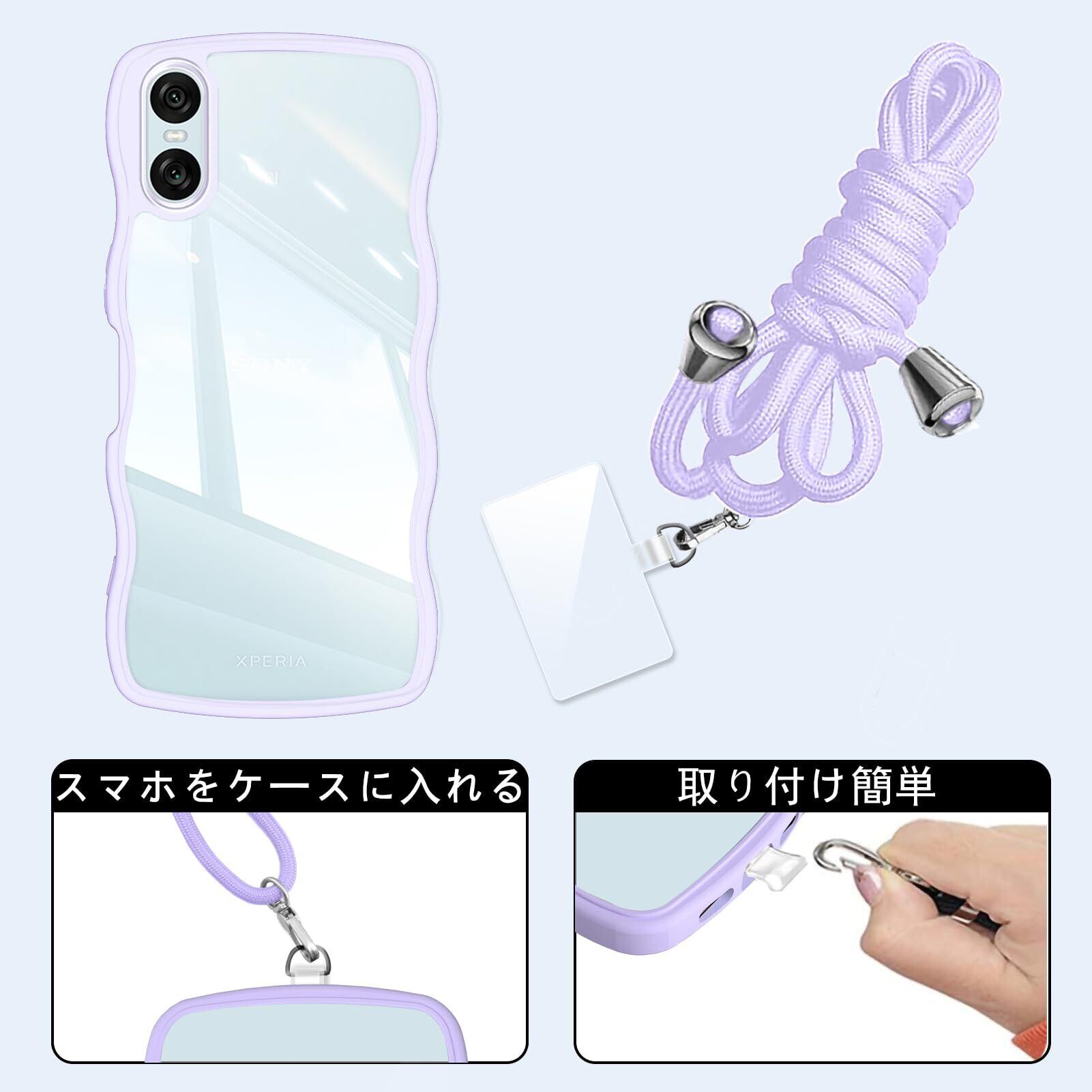Xperia 10 VI ケース クリア ショルダー SO-52E / SOG14 / A402SO / XQ-ES44 ケース 耐衝撃 人気 かわいい エクスペリア10 vi カバー Xperia 10VI スマホケース 透明 薄型 軽量 首かけ 肩掛け 縄掛けケース ストラップ付き 長さ調整可能 落下防止 ワイヤレス充電対応(パープル)