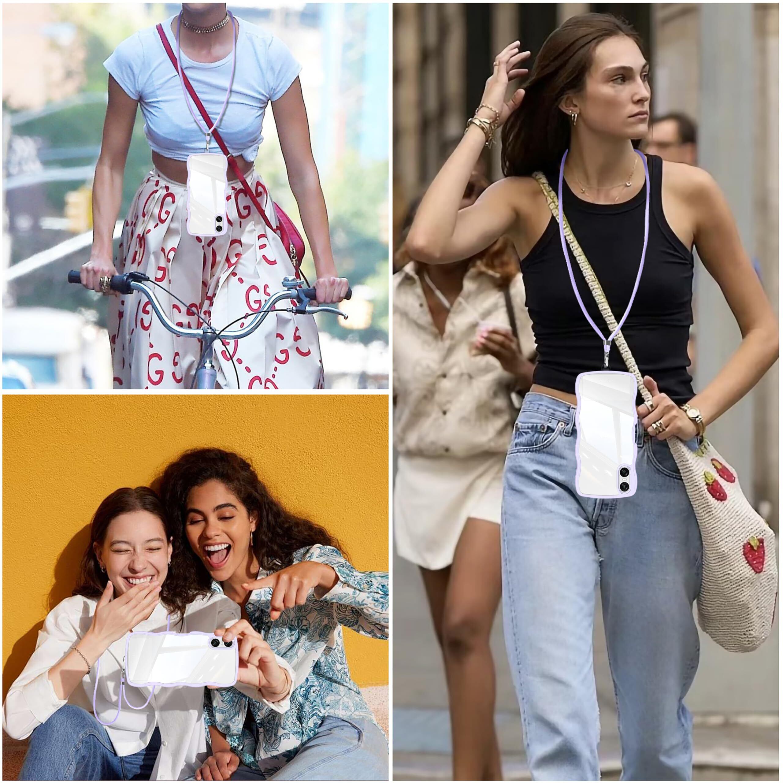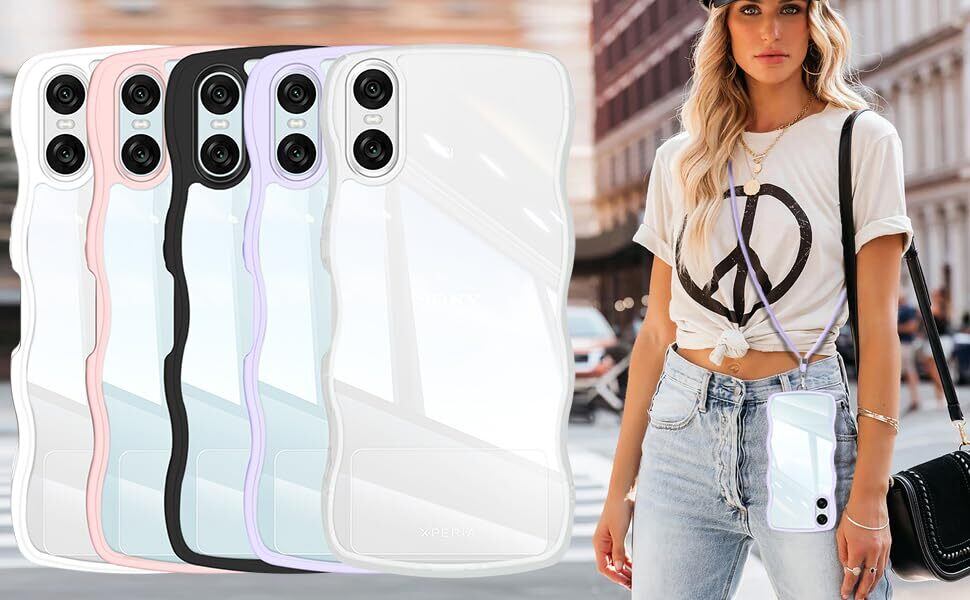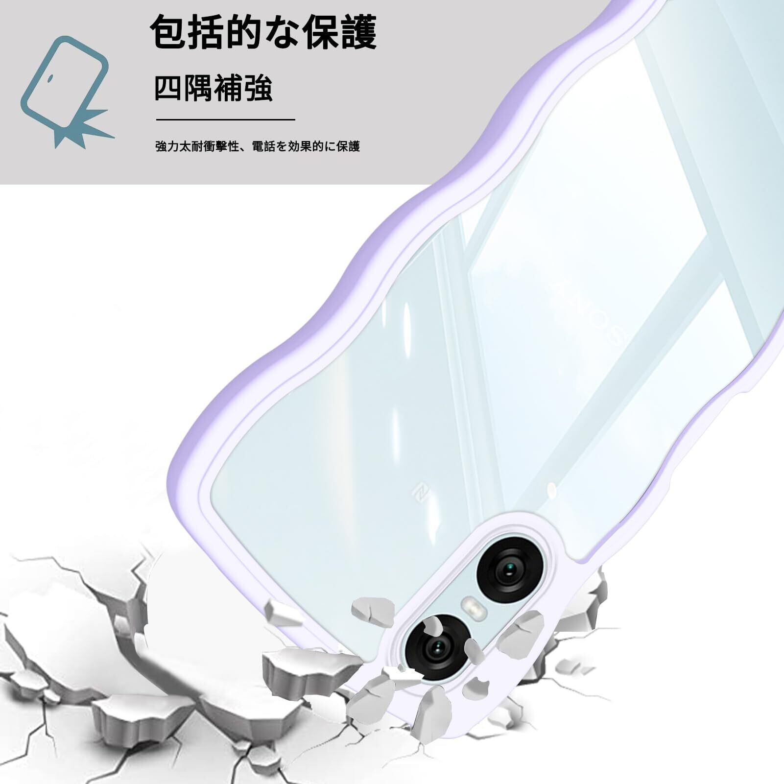 Xperia 10 VI ケース クリア ショルダー SO-52E / SOG14 / A402SO / XQ-ES44 ケース 耐衝撃 人気 かわいい エクスペリア10 vi カバー Xperia 10VI スマホケース 透明 薄型 軽量 首かけ 肩掛け 縄掛けケース ストラップ付き 長さ調整可能 落下防止 ワイヤレス充電対応(パープル)