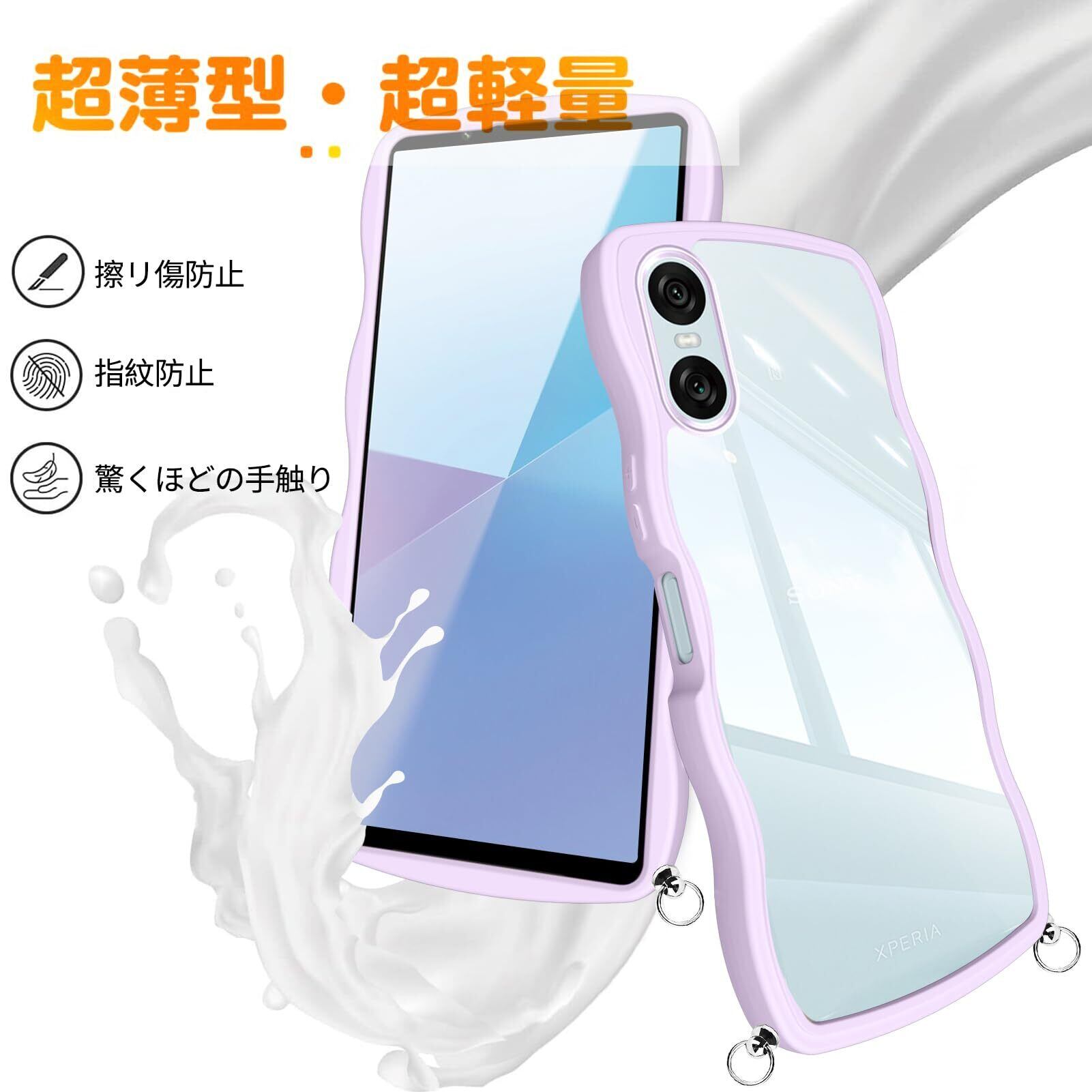 【数量限定】Xperia 10 VI ケース クリア ショルダー SO-52E / SOG14 / A402SO / XQ-ES44 ケース 耐衝撃 人気 かわいい エクスペリア10 vi カバー Xperia 10VI スマホケース 透明 薄型 軽量 首かけ 肩掛け 縄掛けケース ストラップ付き 長さ調整可能 落下防止 ワイヤレス充電対応(パープル)