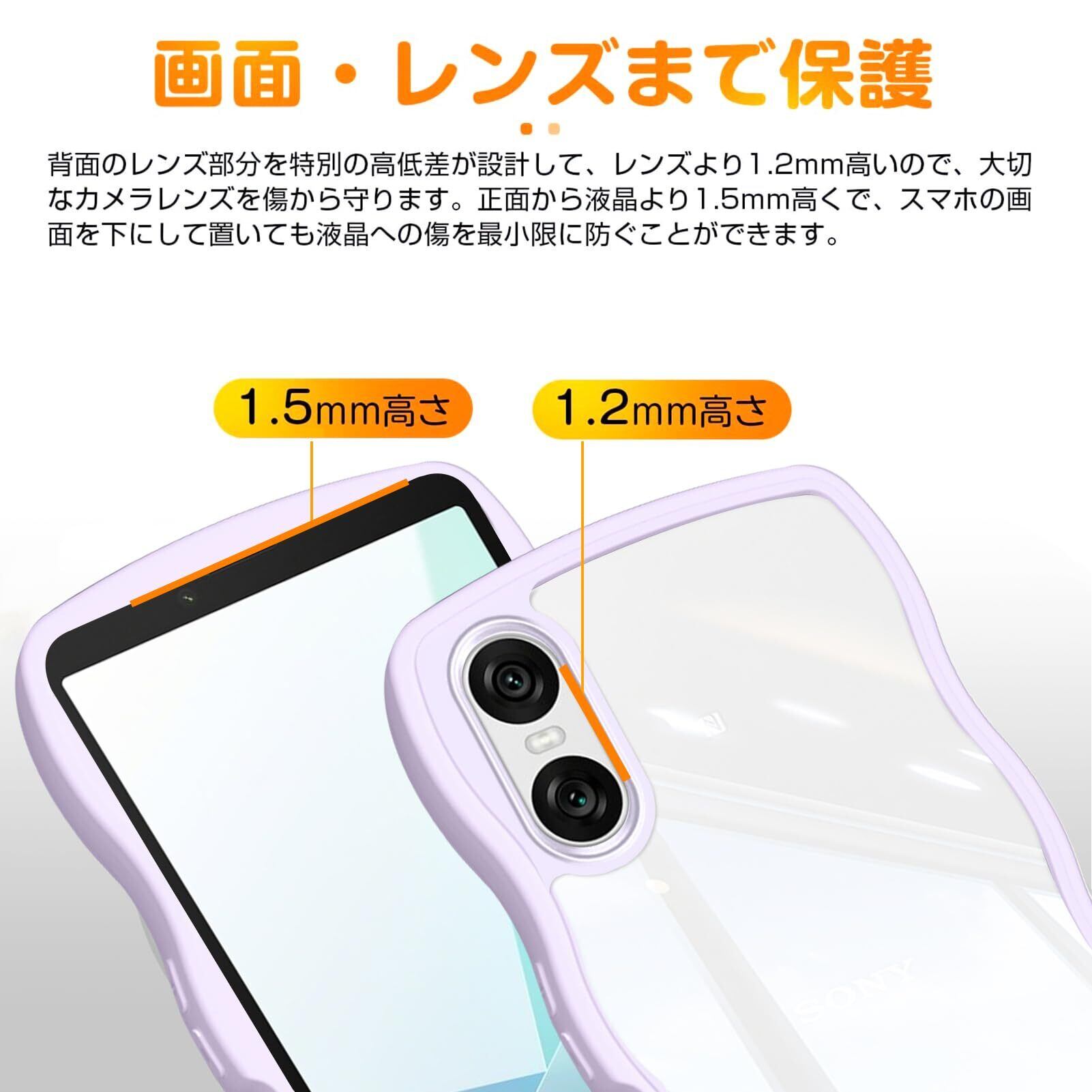 【滑り止めフレーム・全面保護】携帯電話ケースの側面は波型のデザインを採用しており、グリップが良く、携帯電話が誤って落下するのを効果的に防ぎます。カメラレンズの周りに段差をつけて擦り傷を防ぎます、平らな場所においても、液晶画面とカメラレンズに直接触れることがなく。