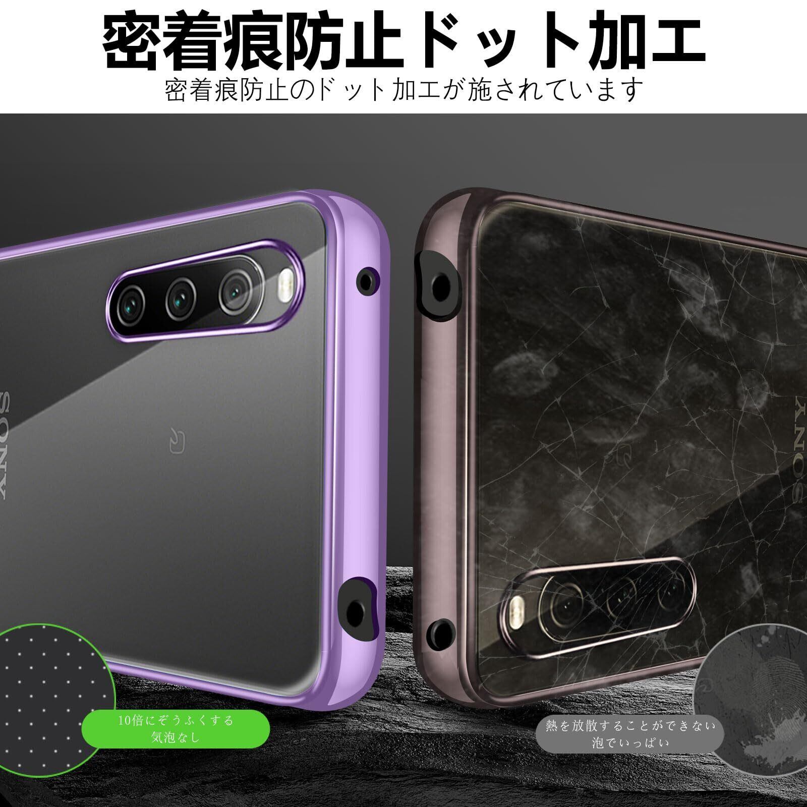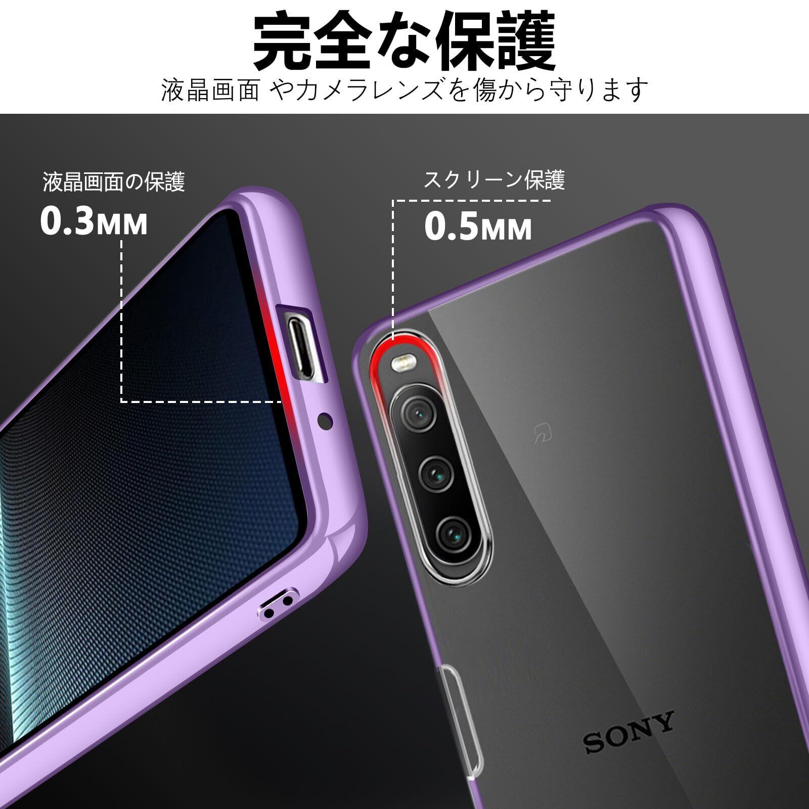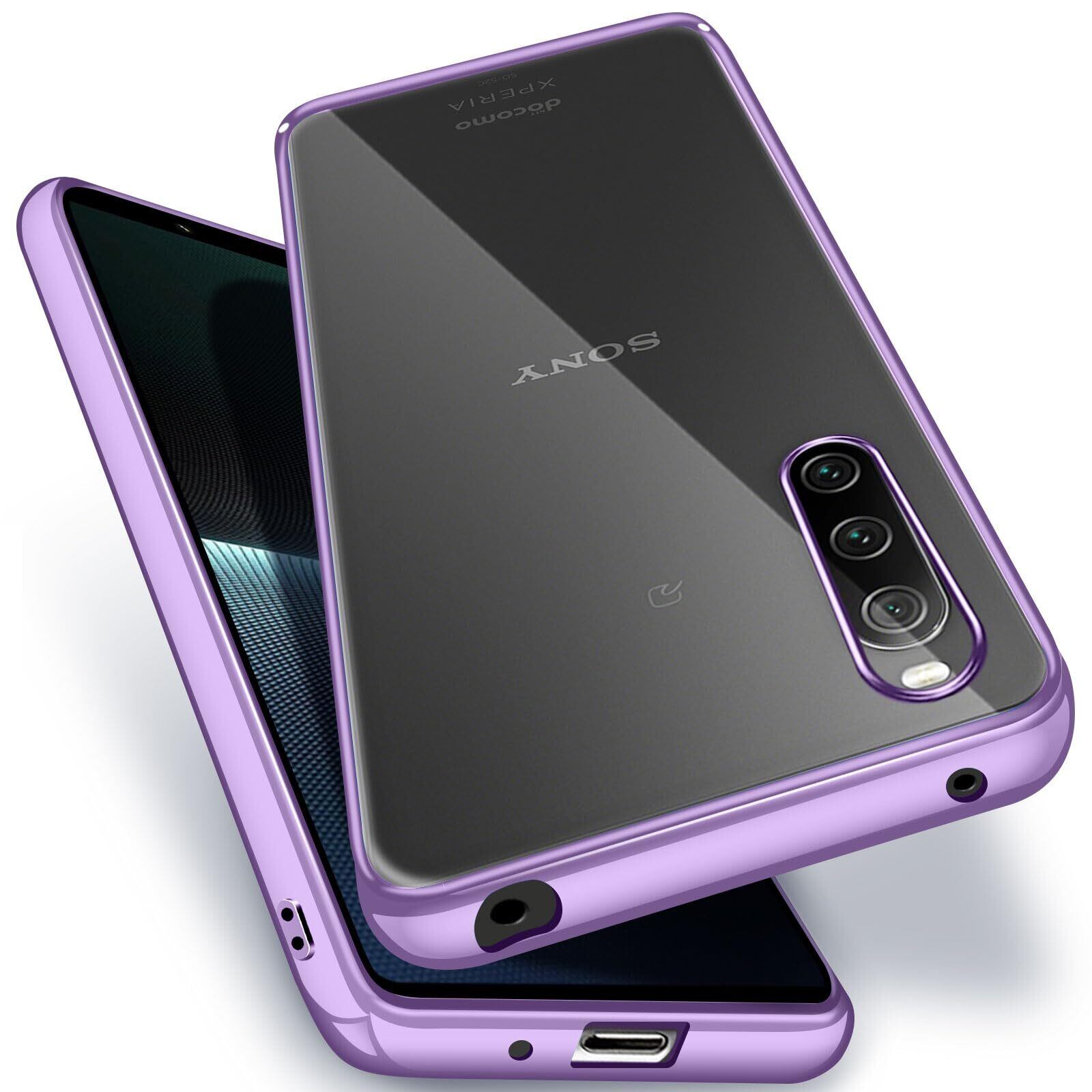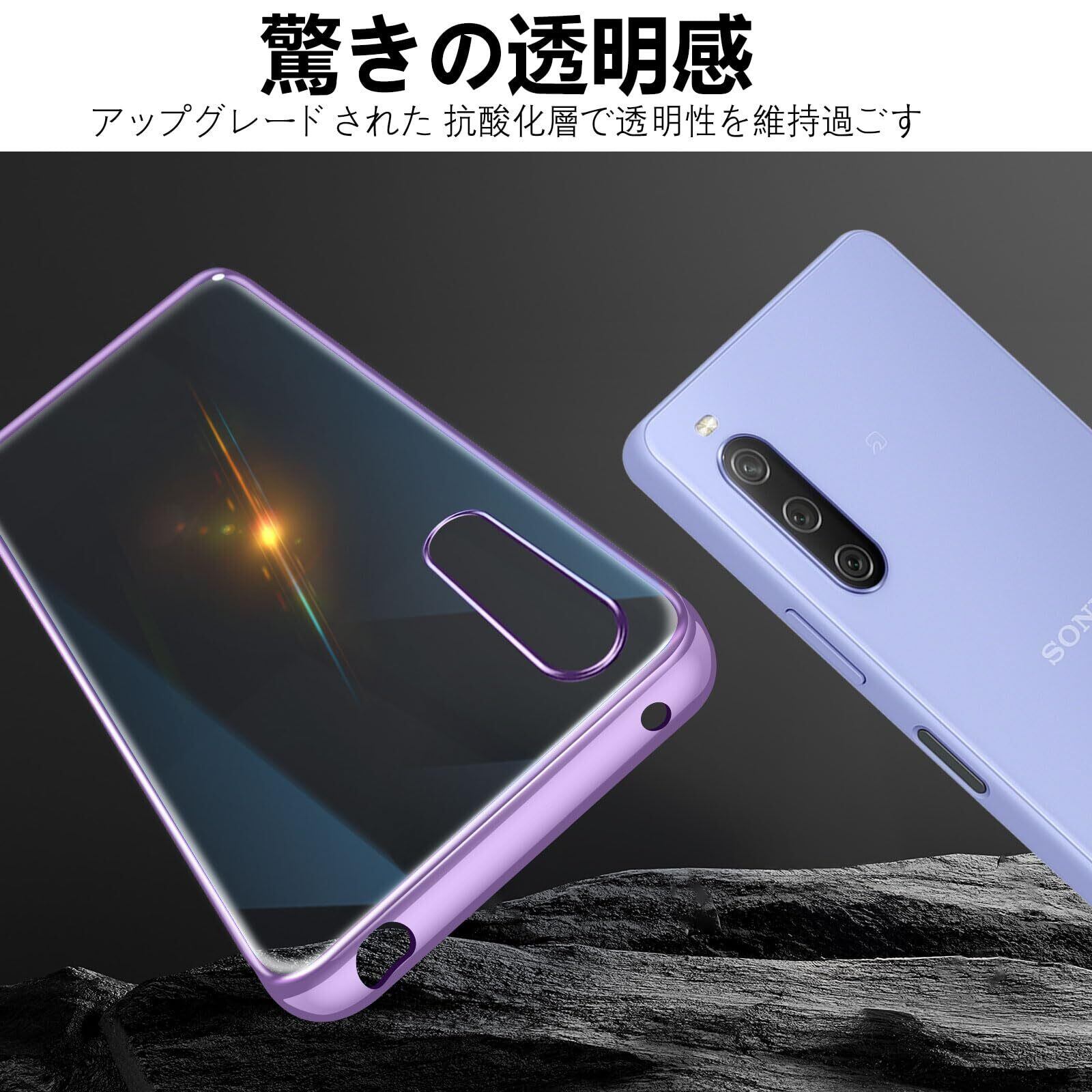 Sony Xperia 10 V クリア ケース 耐衝撃 SO-52D SOG11 カバー 米軍MIL規格 エクスペリア10V スマホケース TPU 保護ケース ストラップホール付き メッキ加工 クリアバック(パープル)