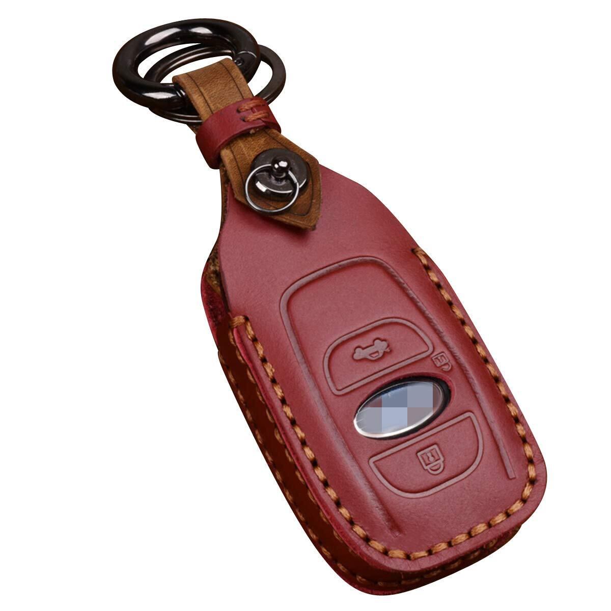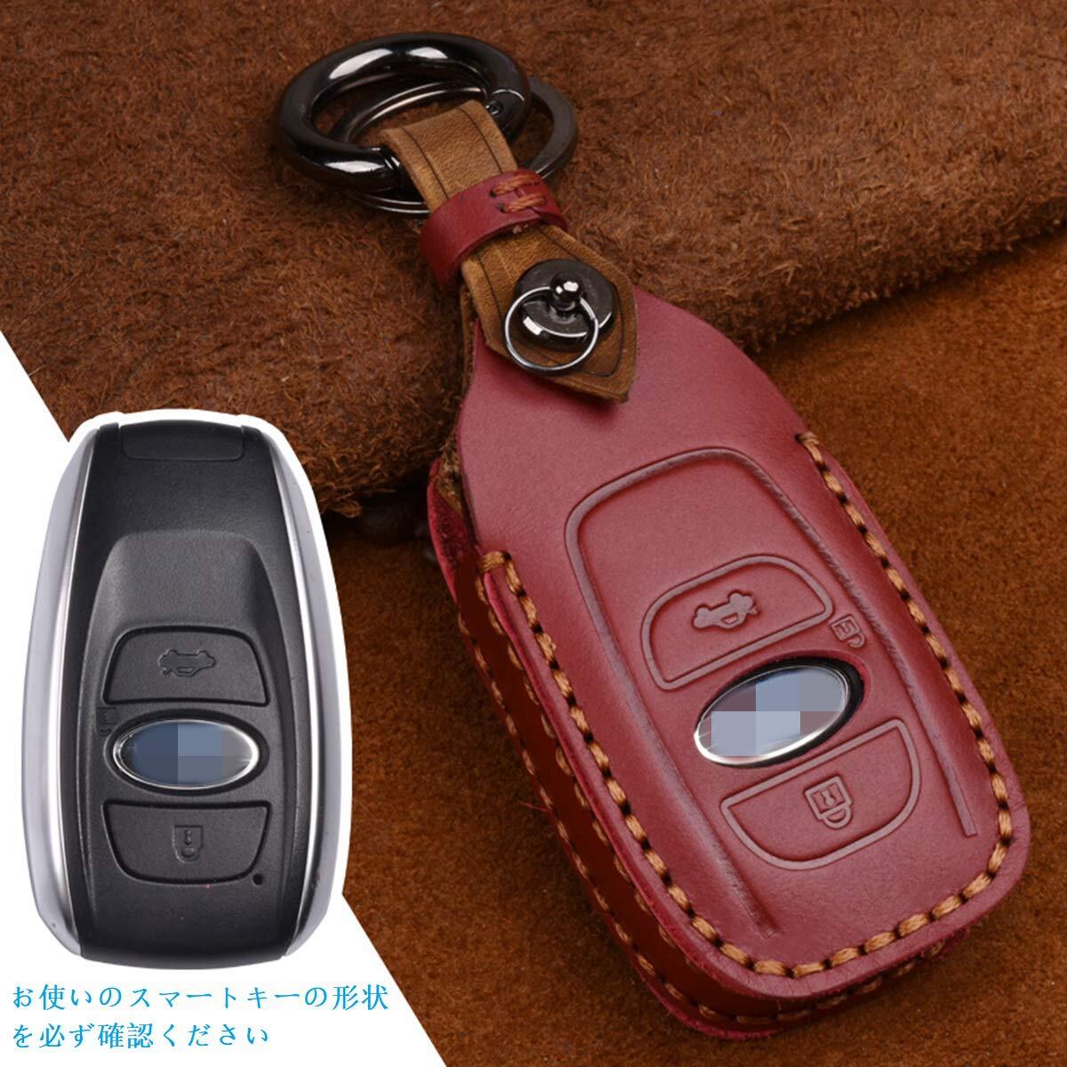 【特価セール】[YANMW] 適合 スバル キー ケース 本革 レザー製 キーケース キーカバー フレヴォーグ レガシィ B4 インプレッサ G4 WRX S4 STI XV Outback Forester BRZ スマピタくんタスタイリッシュ 汚れ 滑り 傷 防止(赤)
