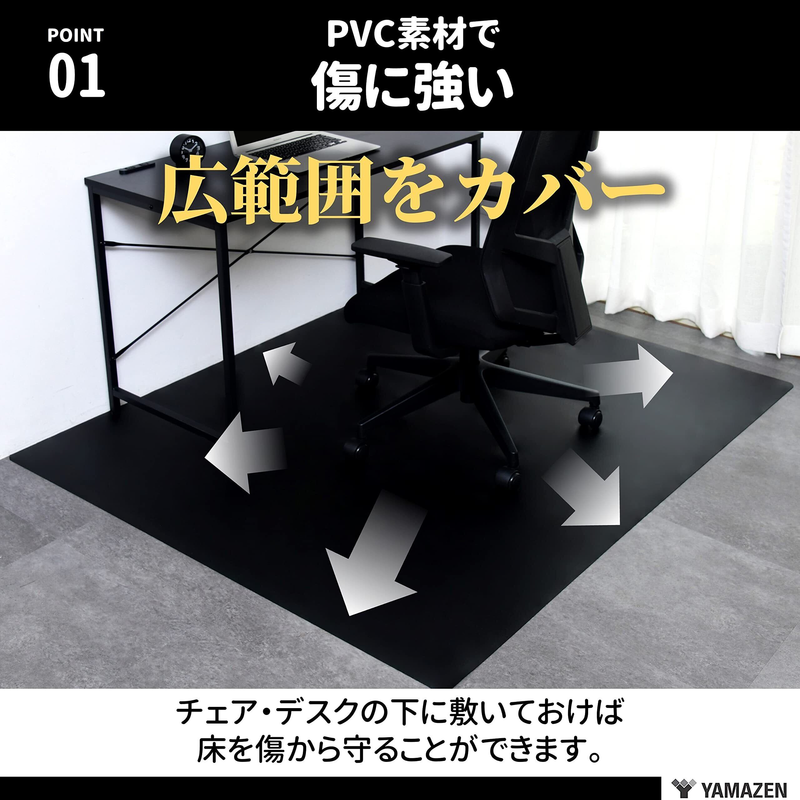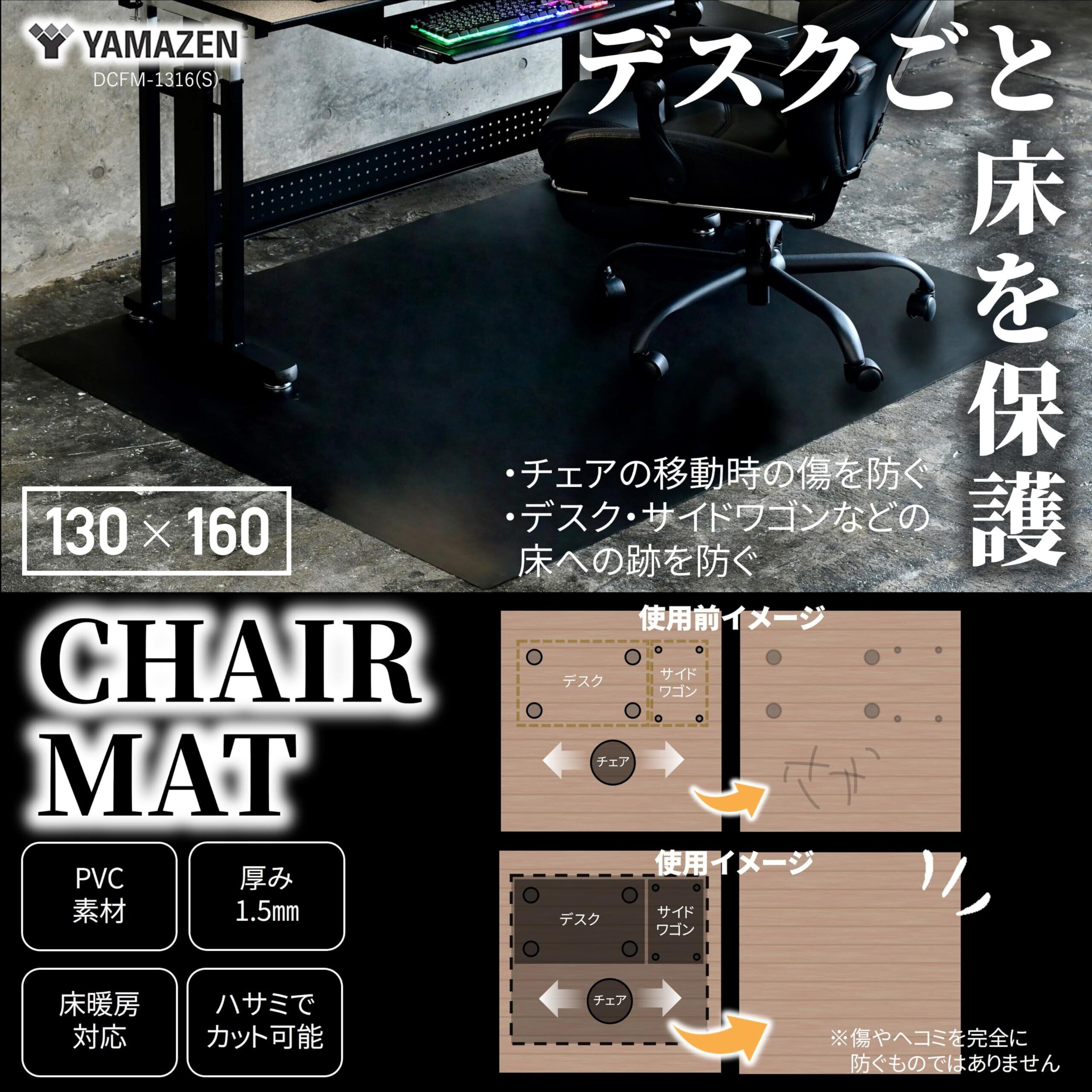 山善(YAMAZEN) チェアマット (デスク&チェアマット) 幅130×奥行160cm キズや汚れに強い 床保護 ゲーミング ブラック DCFM-1316(S)(BK) テレワーク
