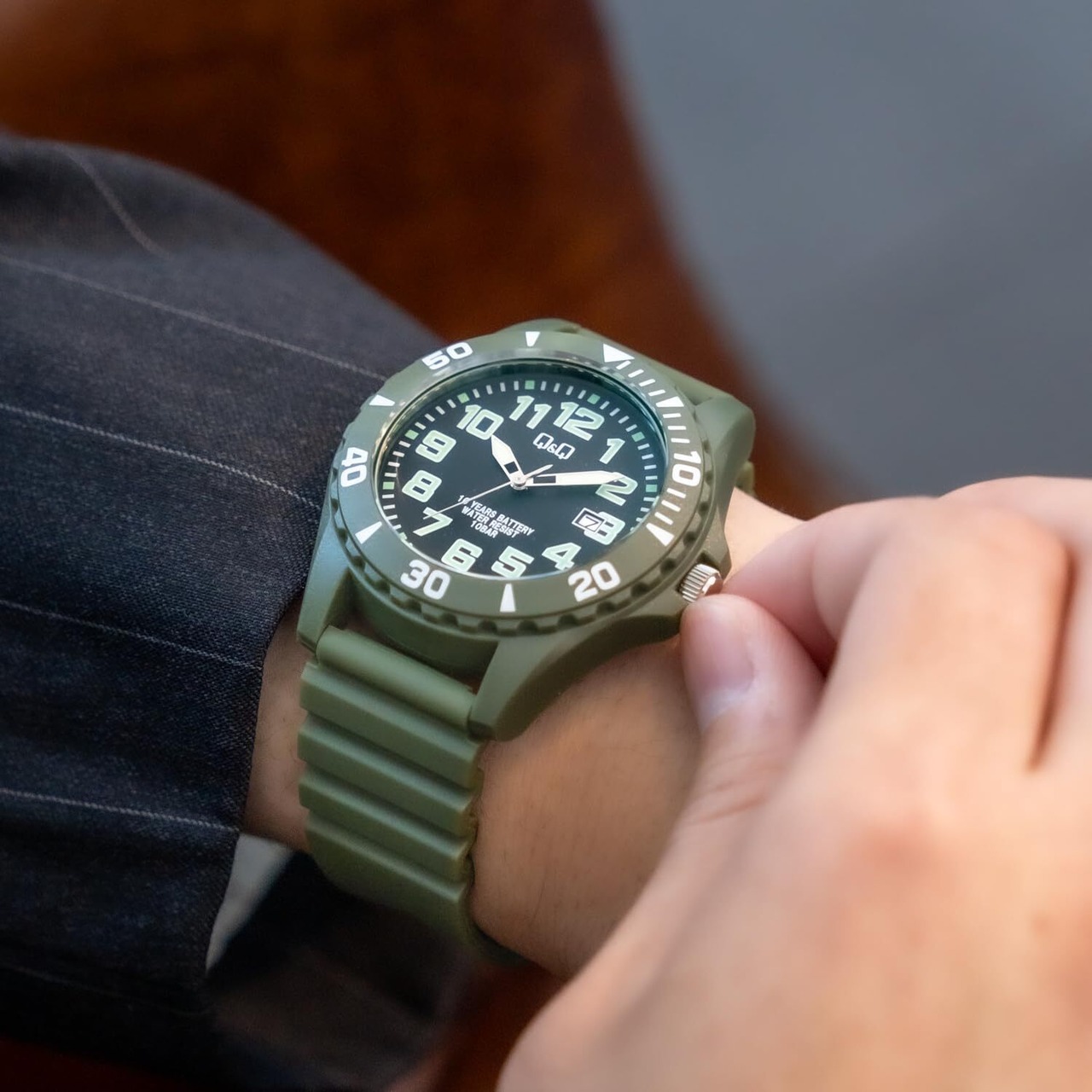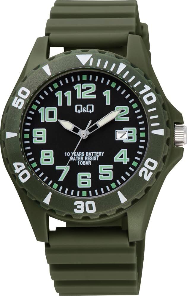 【在庫処分】[シチズンQ&Q] 腕時計 キューアンドキュー アナログ 電池寿命10年 10気圧防水 ウレタンバンド A22A-003VK メンズ カーキ