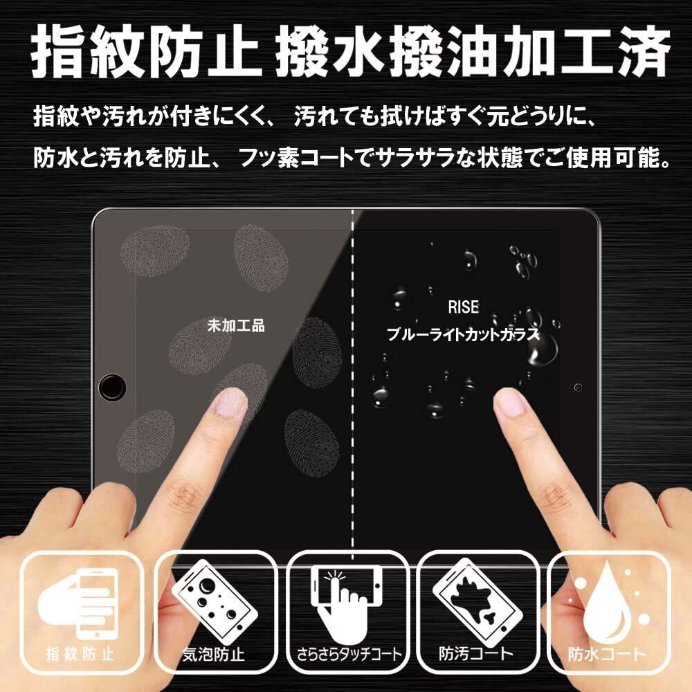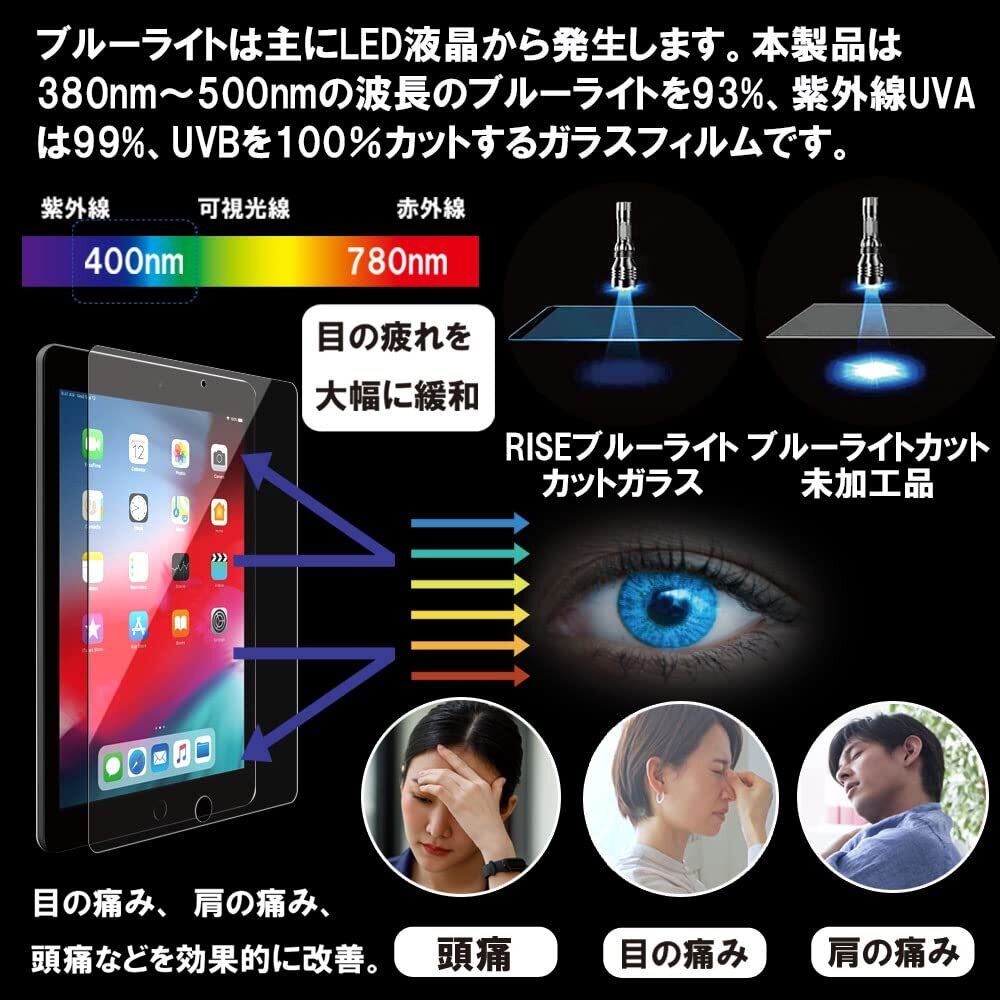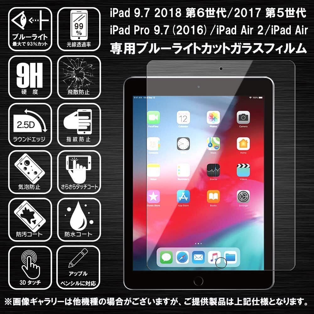 【ブルーライトカット 93%】RISE ガラスフィルム フィルム iPad 9.7 2018 第 6世代 / 2017 第 5世代 / iPad Pro 9.7 / iPad Air 2 / iPad Air 9.7 用 保護フィルム 強化 ガラス 透過率99% 高光沢 日本製 旭硝子 硬度9H 2.5Dラウンドエッジ 自動吸着 気泡ゼロ 飛散防止 指紋防止 撥水撥油 3D タッチ