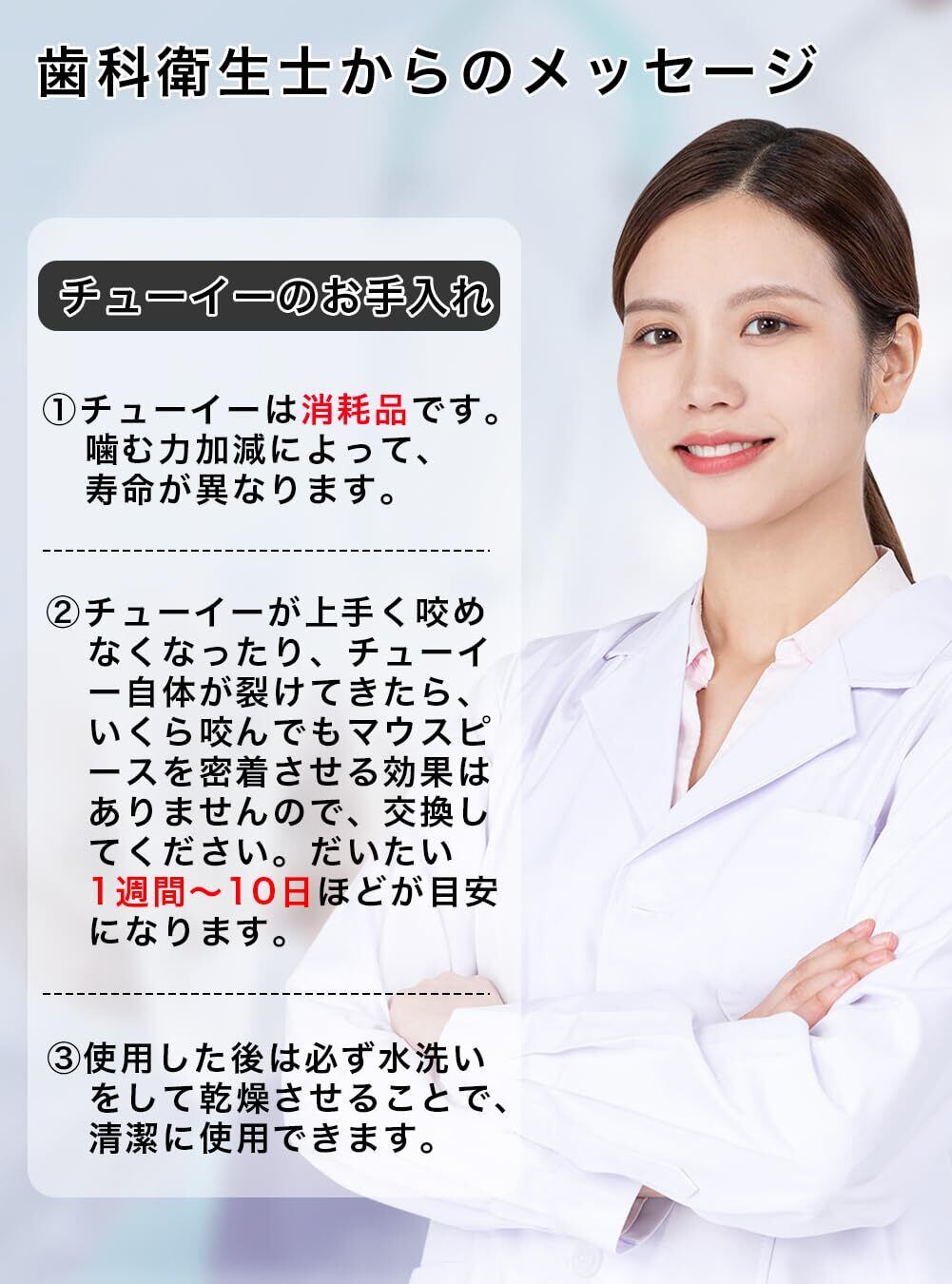 【使いやすくて衛生的】チューイー でマウスピースの装着は容易に!
