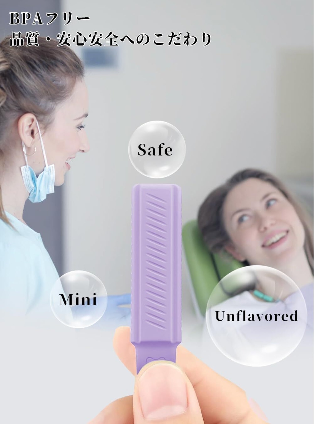 【BPAフリーで安全安心】食品級素材で作られたアライナーの装着に必要なアイテム。噛む部分の表面に滑り止め加工を施し、マウスピースを装着した状態で噛むだけフィットさせます!