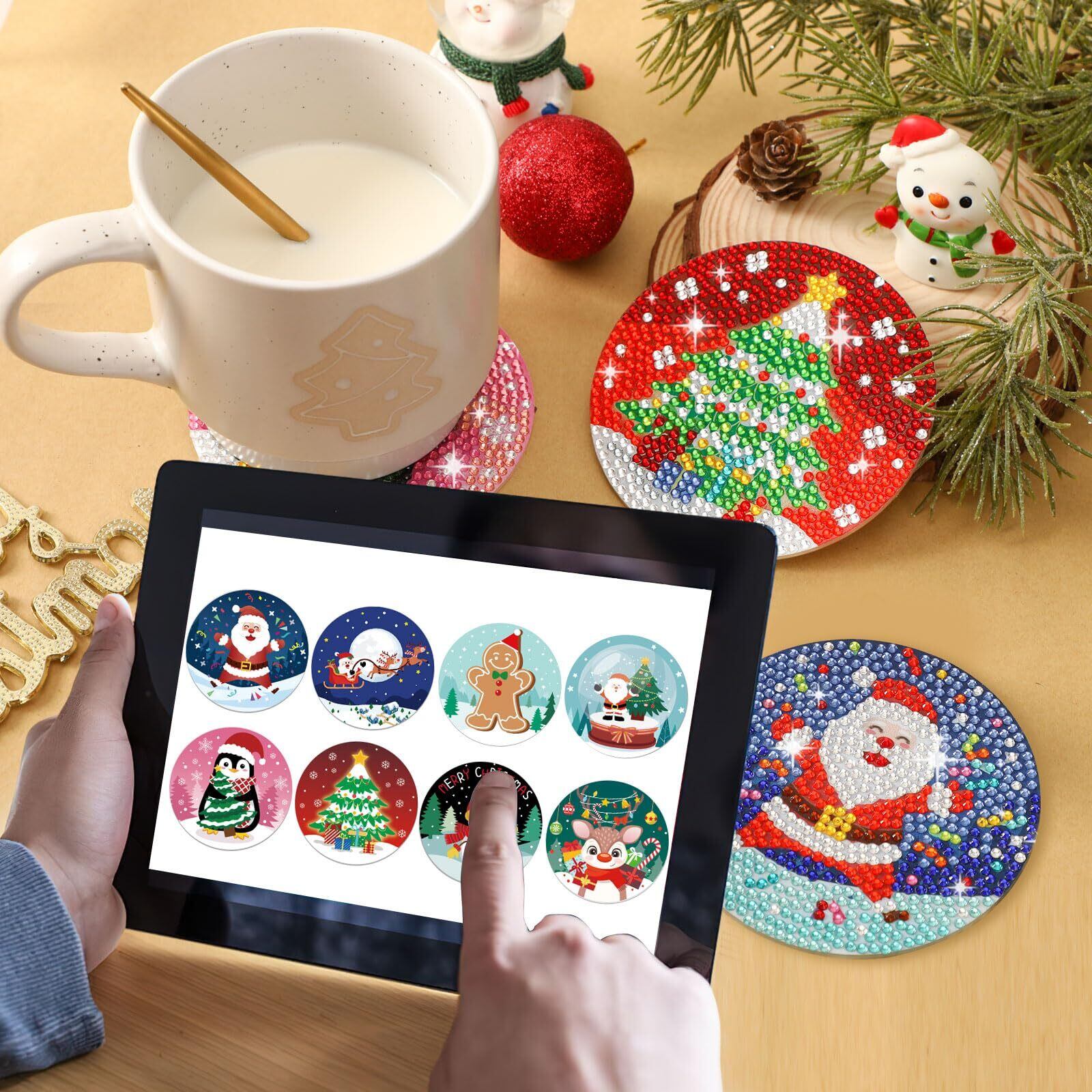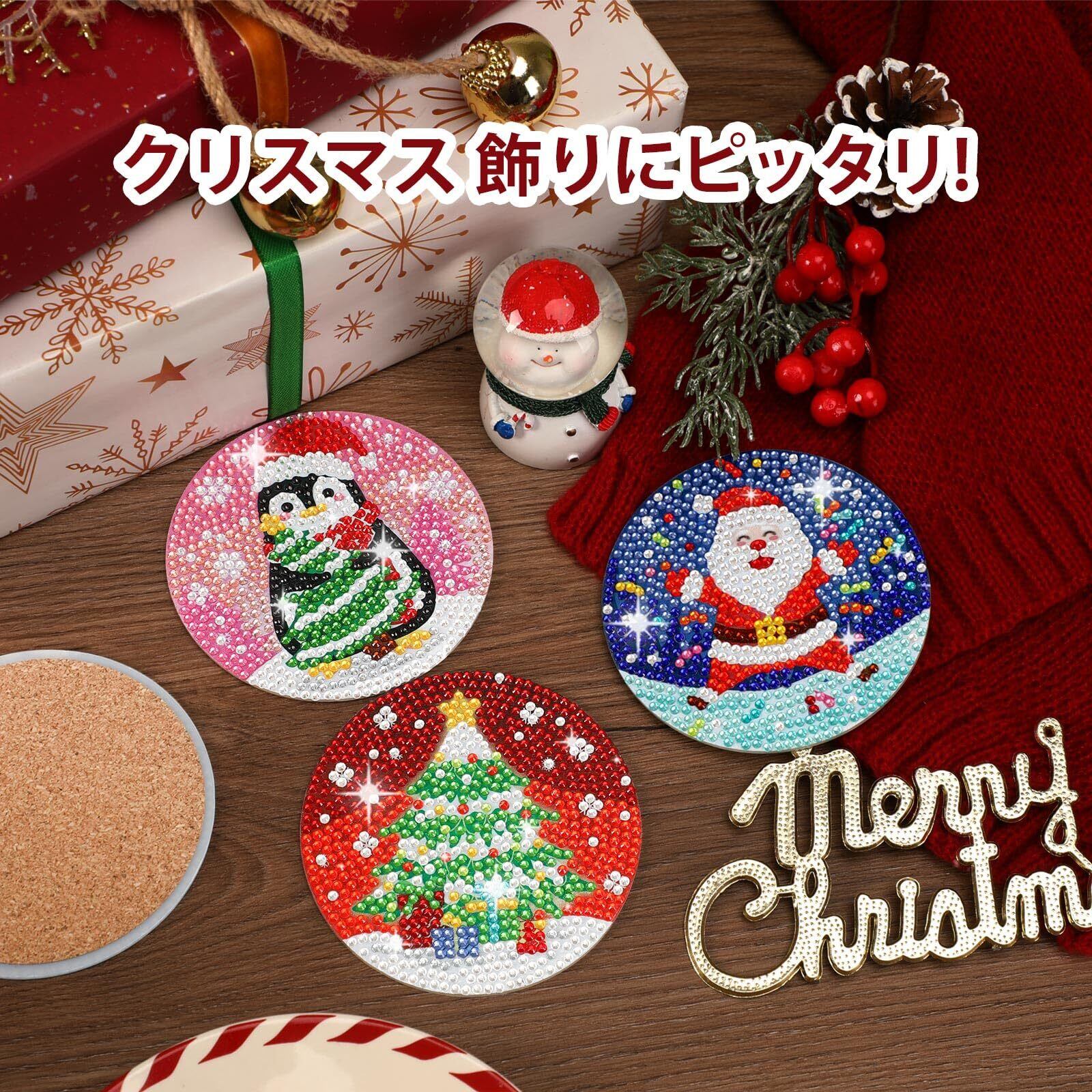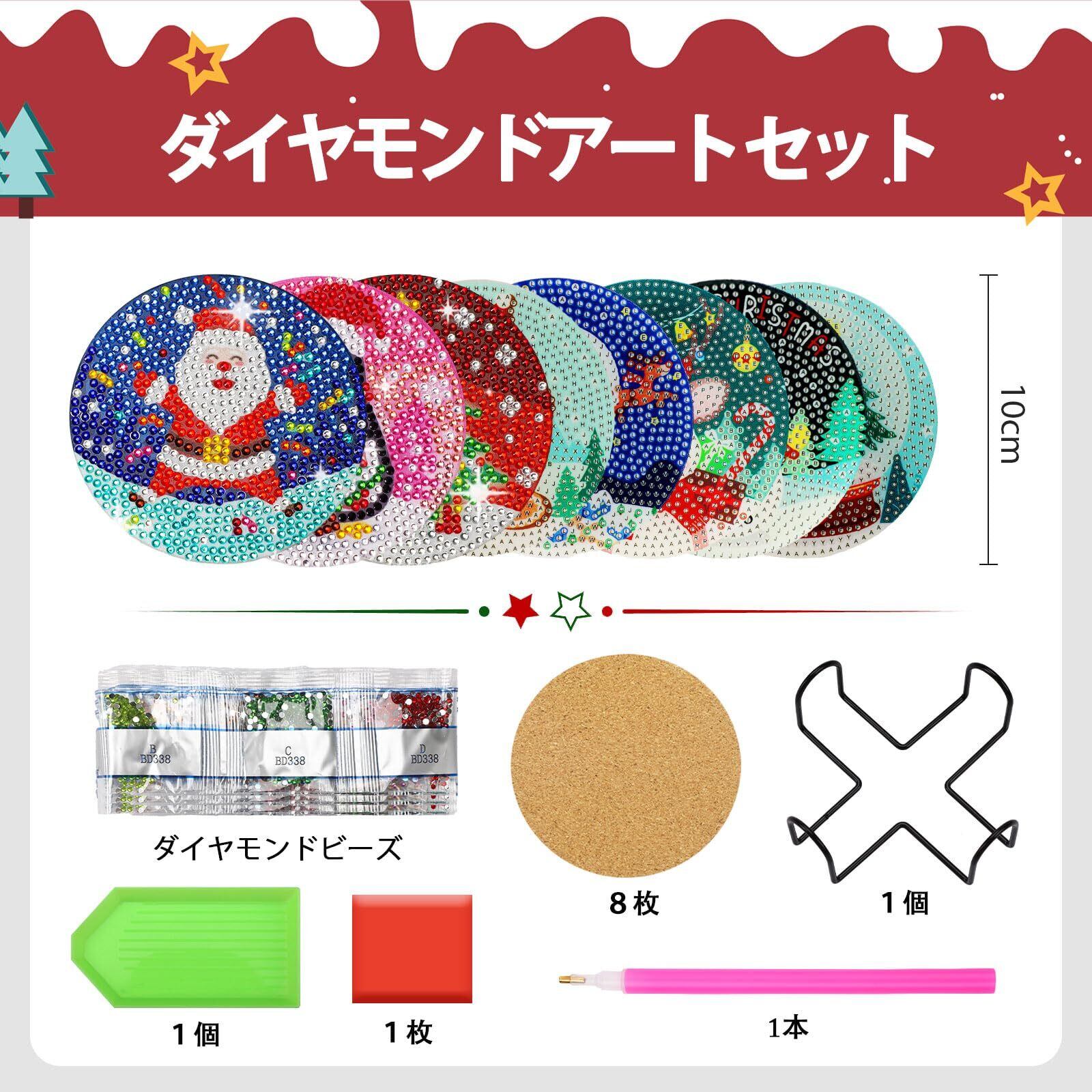JANLOFO クリスマス コースター 8枚セット ダイヤモンドアート プレゼント 初心者向け 飾り 手作り・手芸キット
