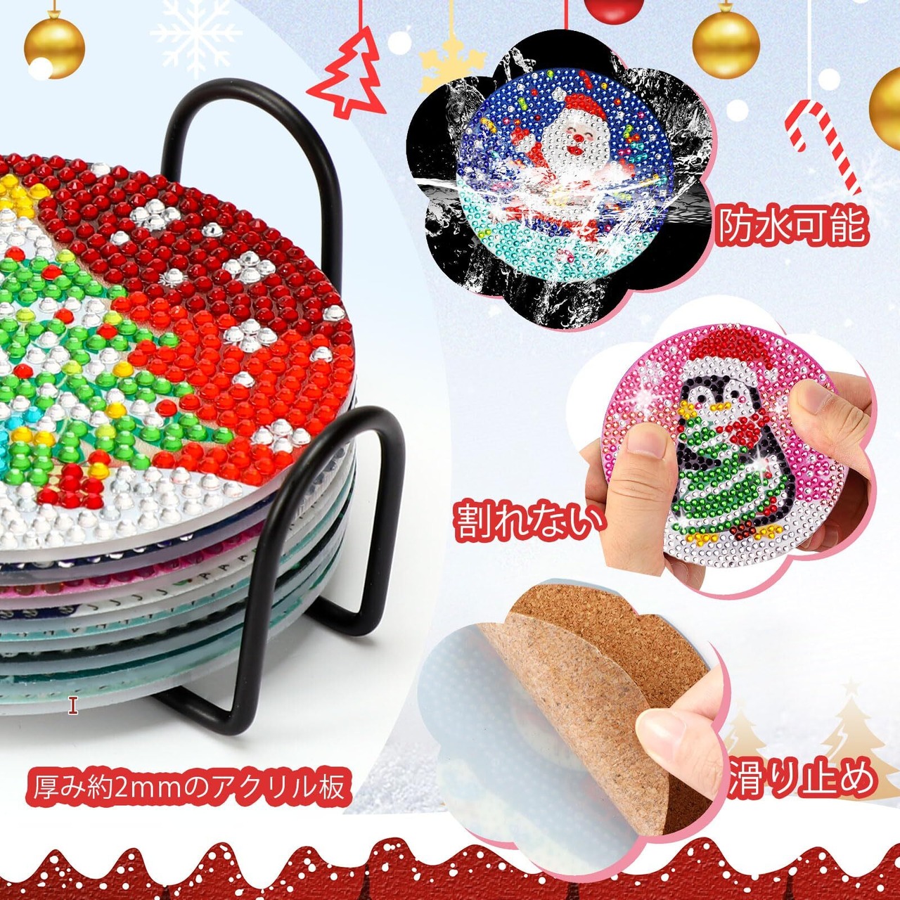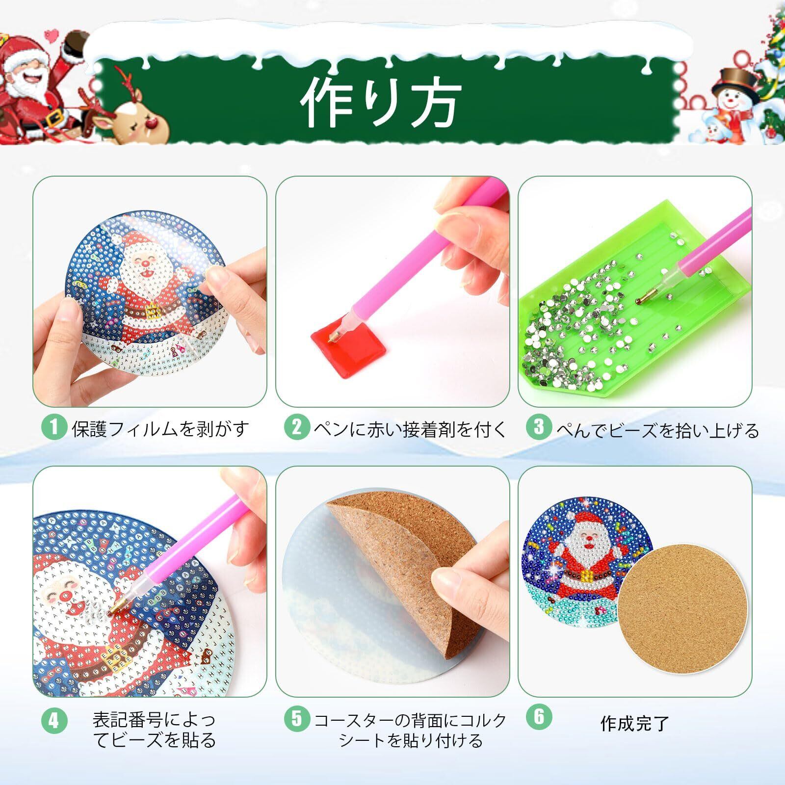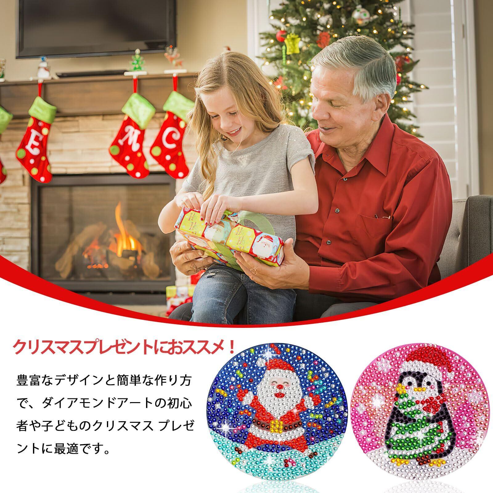 【適用場合】豊富なデザインと簡単な作り方で、ダイアモンドアートの初心者や子どものクリスマス プレゼントに最適です。雰囲気満々な見た目のため、コースターだけでなく、クリスマス オーナメントにも活用でき、クリスマス 飾りとして活躍しています。
