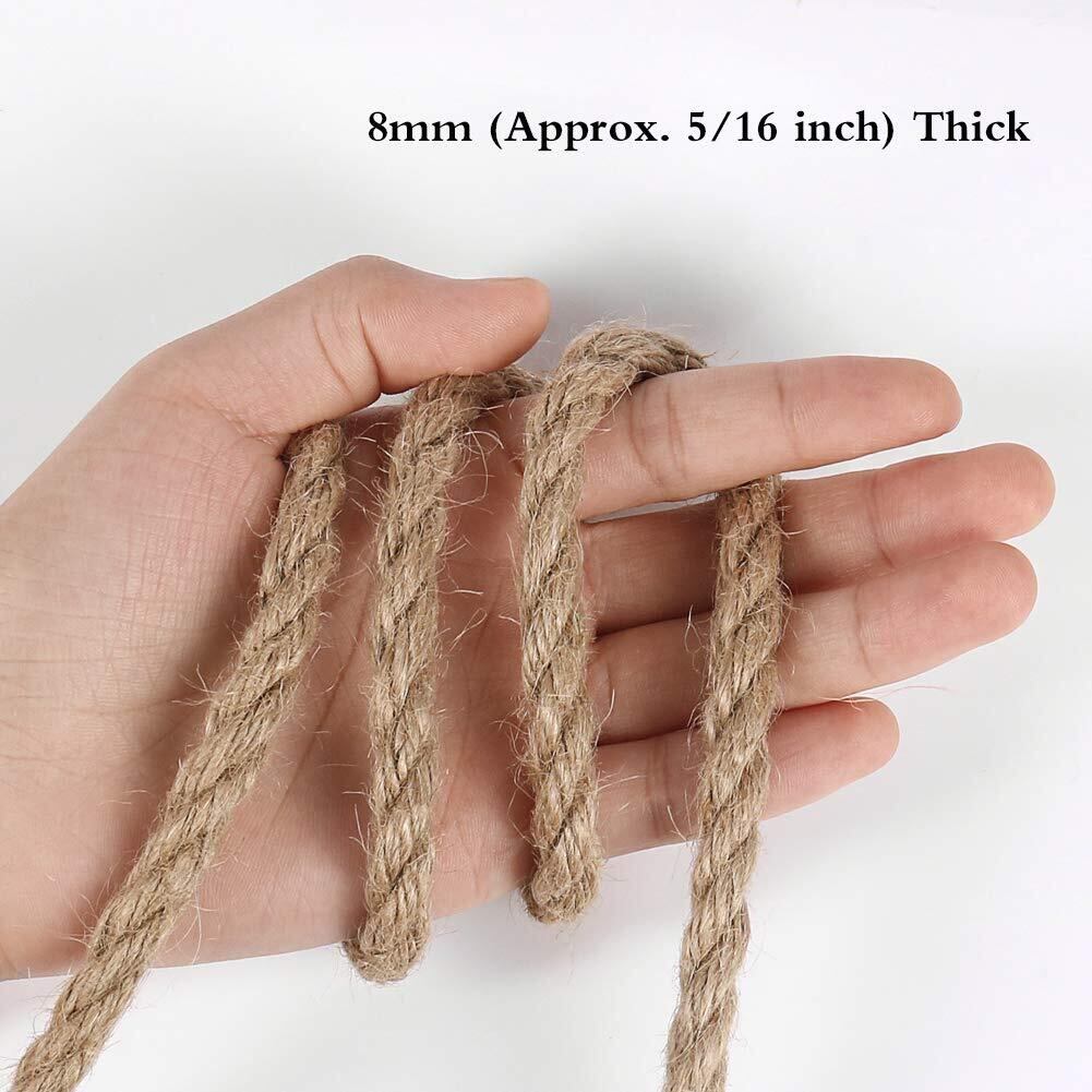 Tenn Well 15M 麻縄, 8mm 太い 麻ロープ キャットタワーの補修 ジュート 麻紐 園芸 梱包 手作り 猫爪とぎ修理などに (茶色)