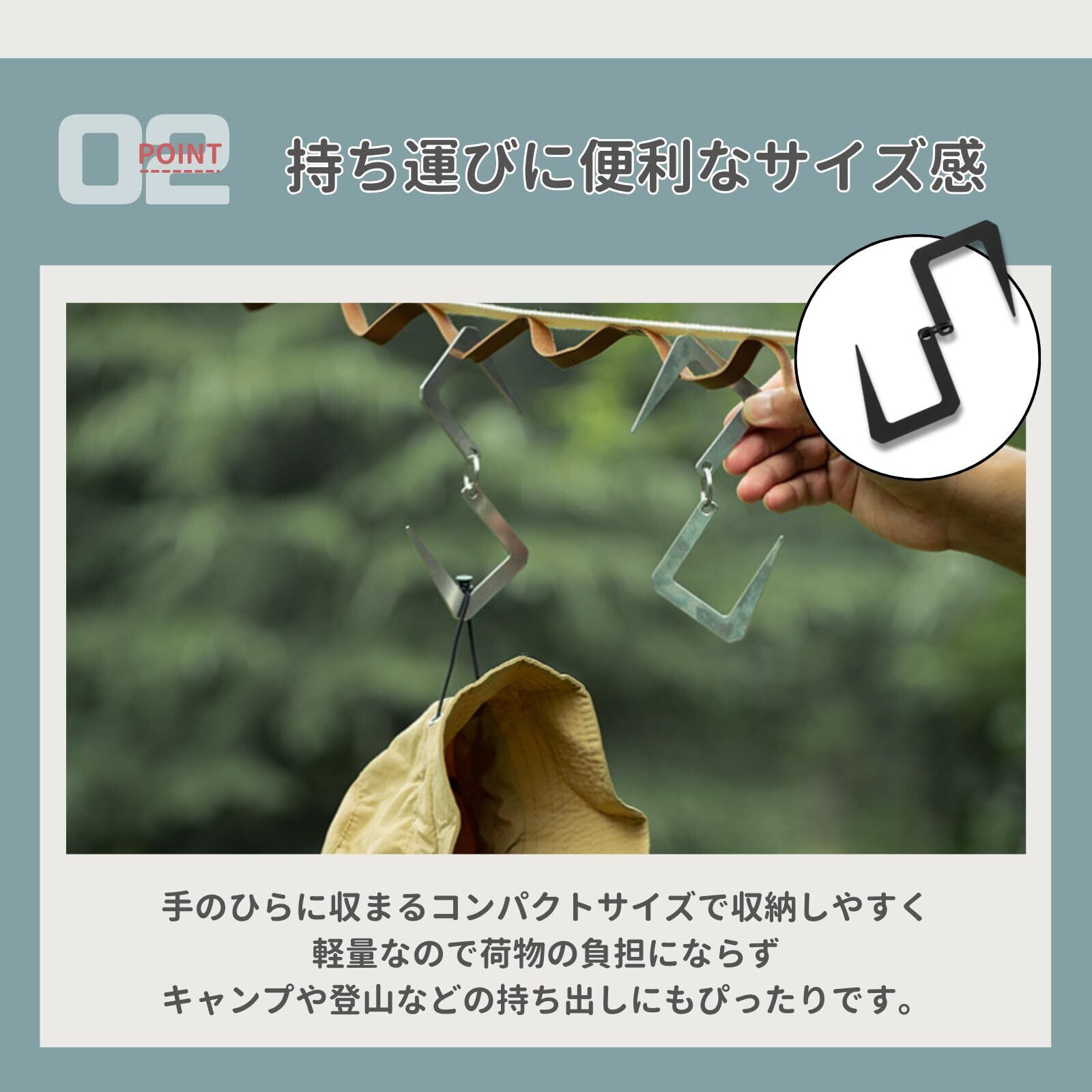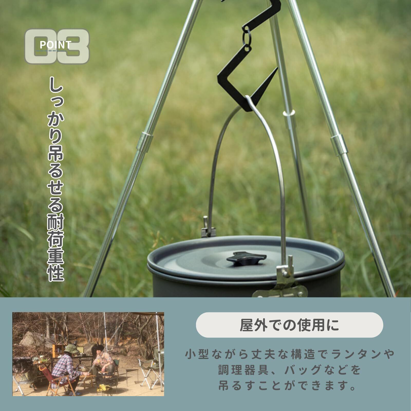 【しっかり吊るせる耐荷重性】小型ながら丈夫な構造で、ランタンや調理器具、バッグなどを安心して吊るすことができます。キャンプギアの整理整頓にも役立ちます。