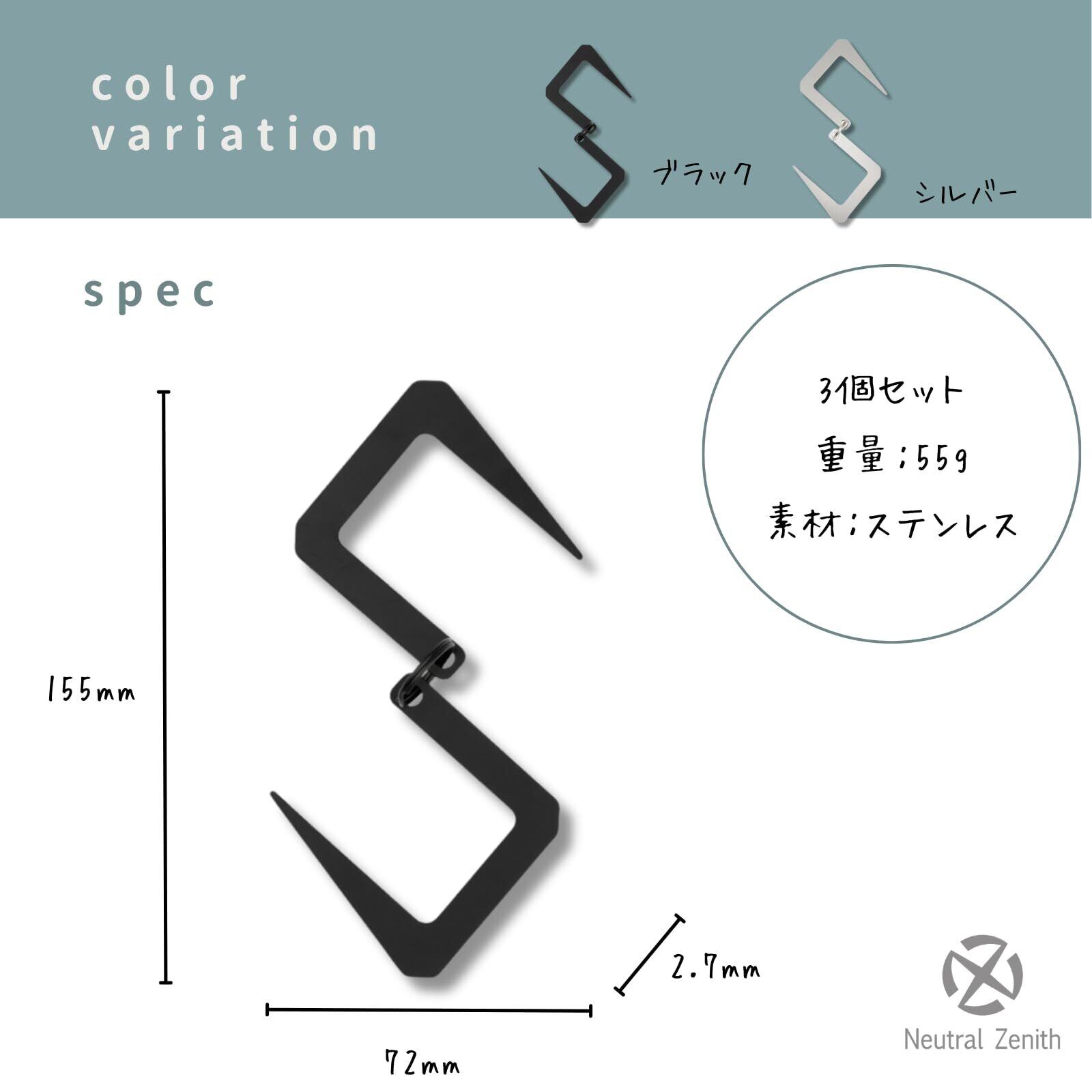 【数量限定】Neutral Zenith ランタンフック S字フック ランタンハンガー キャンプギア アクセサリー 吊り下げ 収納 アウトドア 3個セット (シルバー)