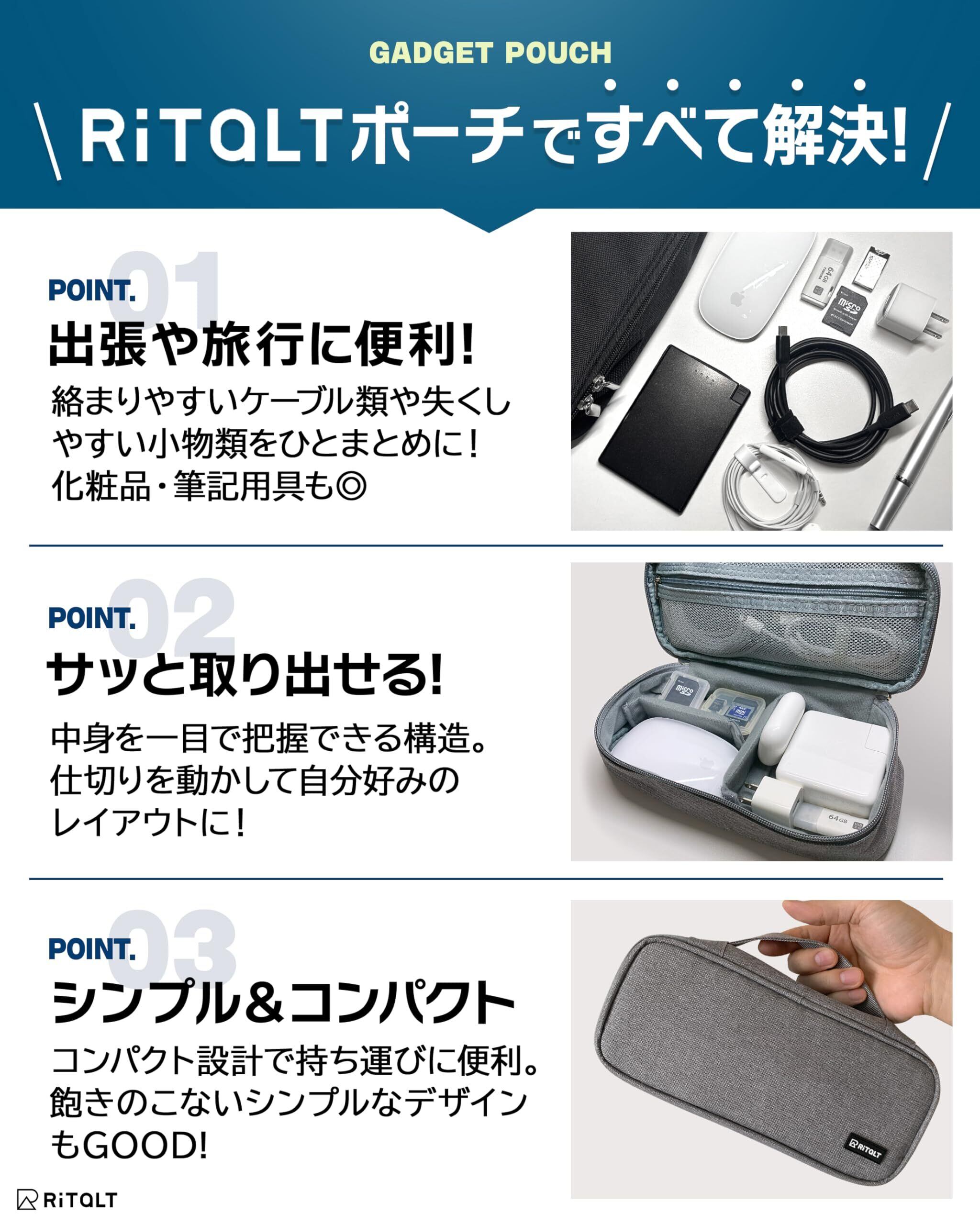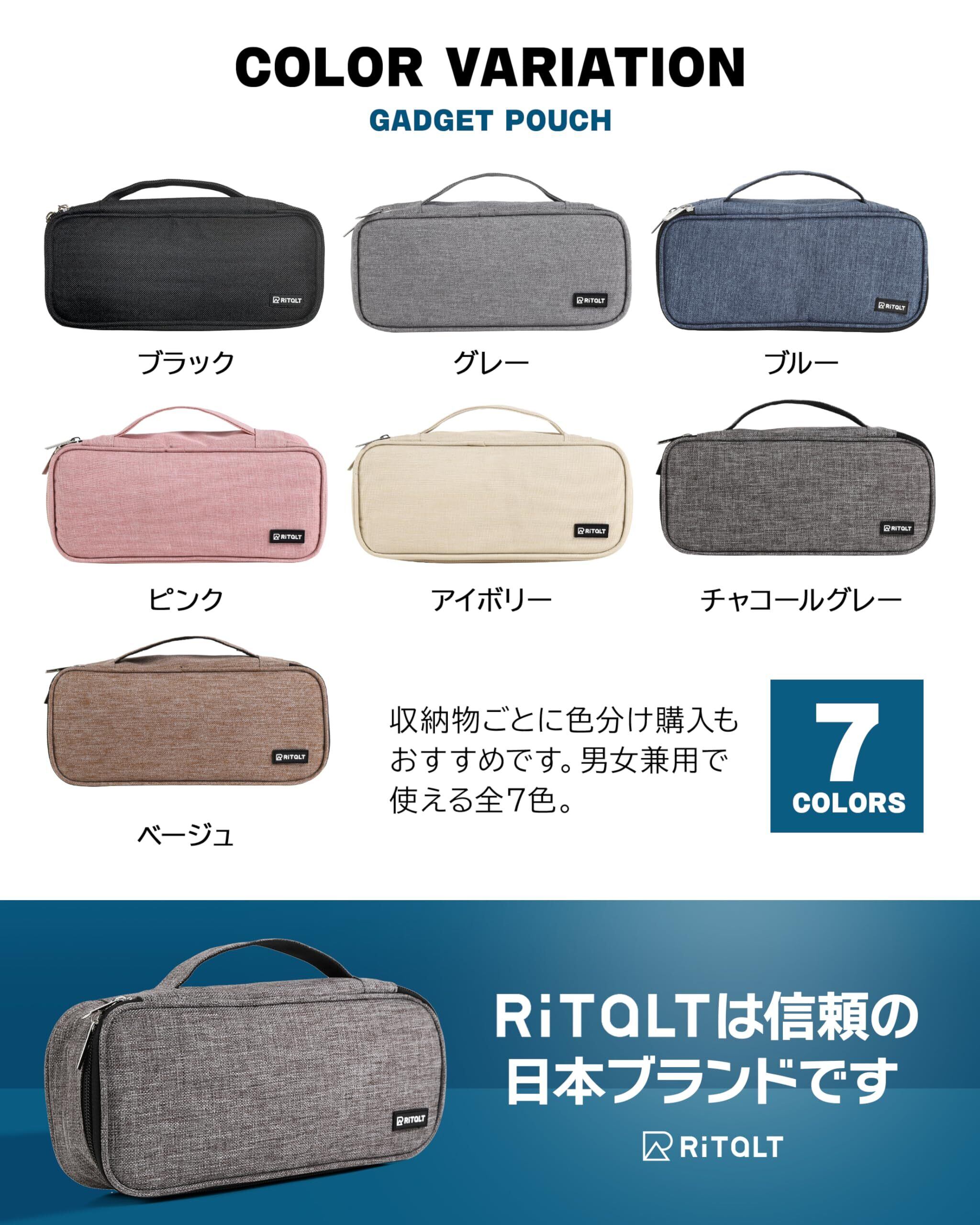 RiTaLT ガジェットポーチ 小型 ポーチ 小物入れ 小さめ ガジェットケース 【コンパクトに収納!何がどこにあるか一目でわかる!】 旅行用 出張 (チャコールグレー)