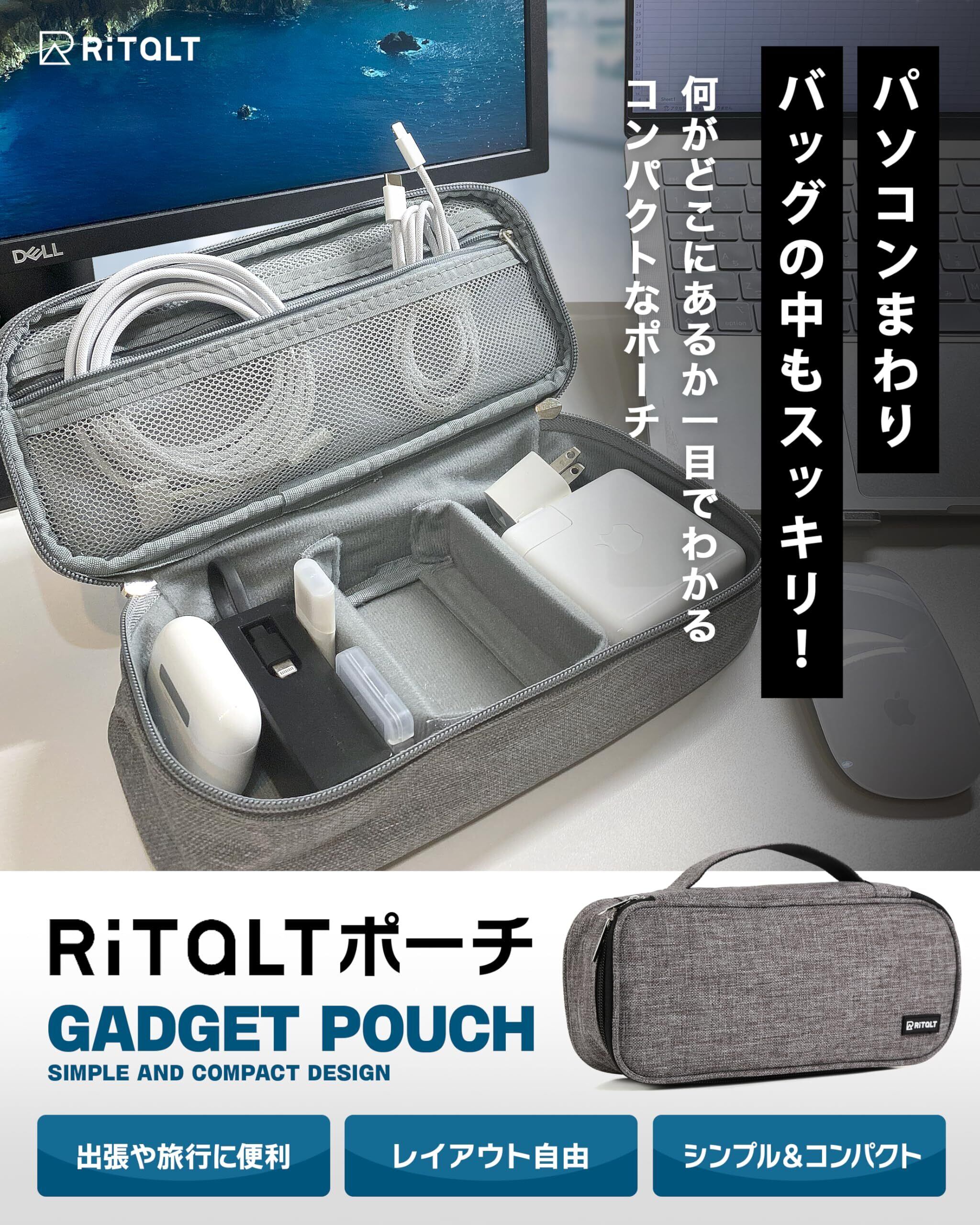 【特価セール】RiTaLT ガジェットポーチ 小型 ポーチ 小物入れ 小さめ ガジェットケース 【コンパクトに収納!何がどこにあるか一目でわかる!】 旅行用 出張 (チャコールグレー)