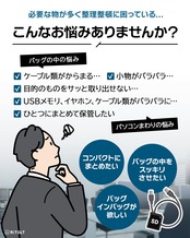 【出張や旅行に便利】からまりやすいケーブル類、失くしやすい小物をひとまとめに!ケーブル類をまとめる結束バンド付き(4本)。ガジェット用、旅行、出張と様々な用途にご活用ください。