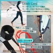 【安全性を高めるサーフィン必須アイテム】 リーシュコードは、サーフィン中の安全を守るための重要な装備です。ボードが波に流されるのを防ぎ、サーファーがすぐにボードに戻れるため、転倒時の危険を軽減します。特に初心者から上級者まで幅広いサーファーに対応しており、急な波でも安心して楽しむことができます。リーシュコードは消耗品のため、予備コードの保有と、年に1度の定期的な交換を推奨します。
