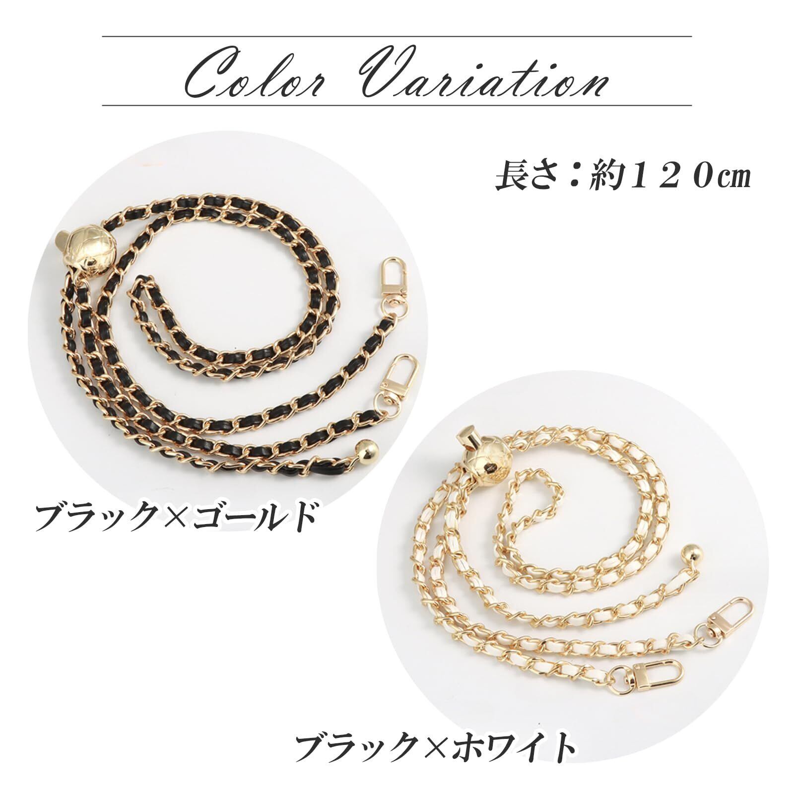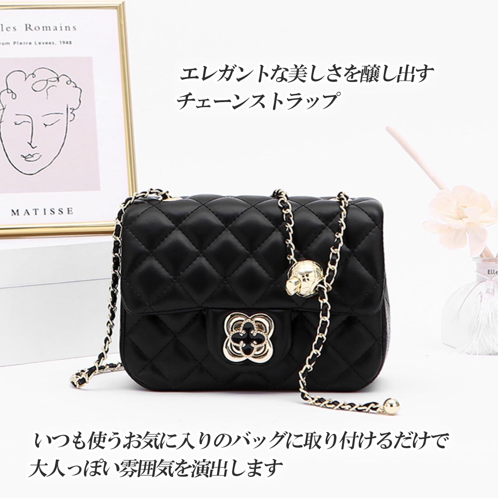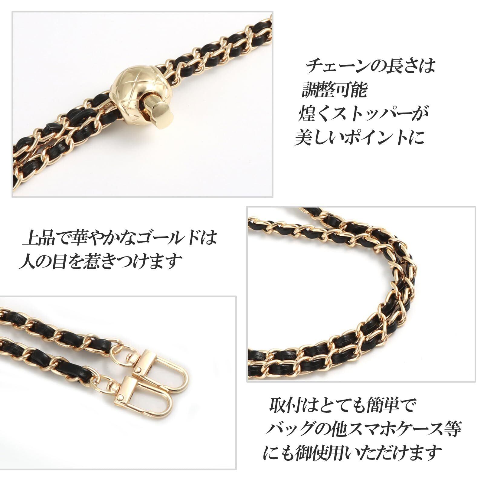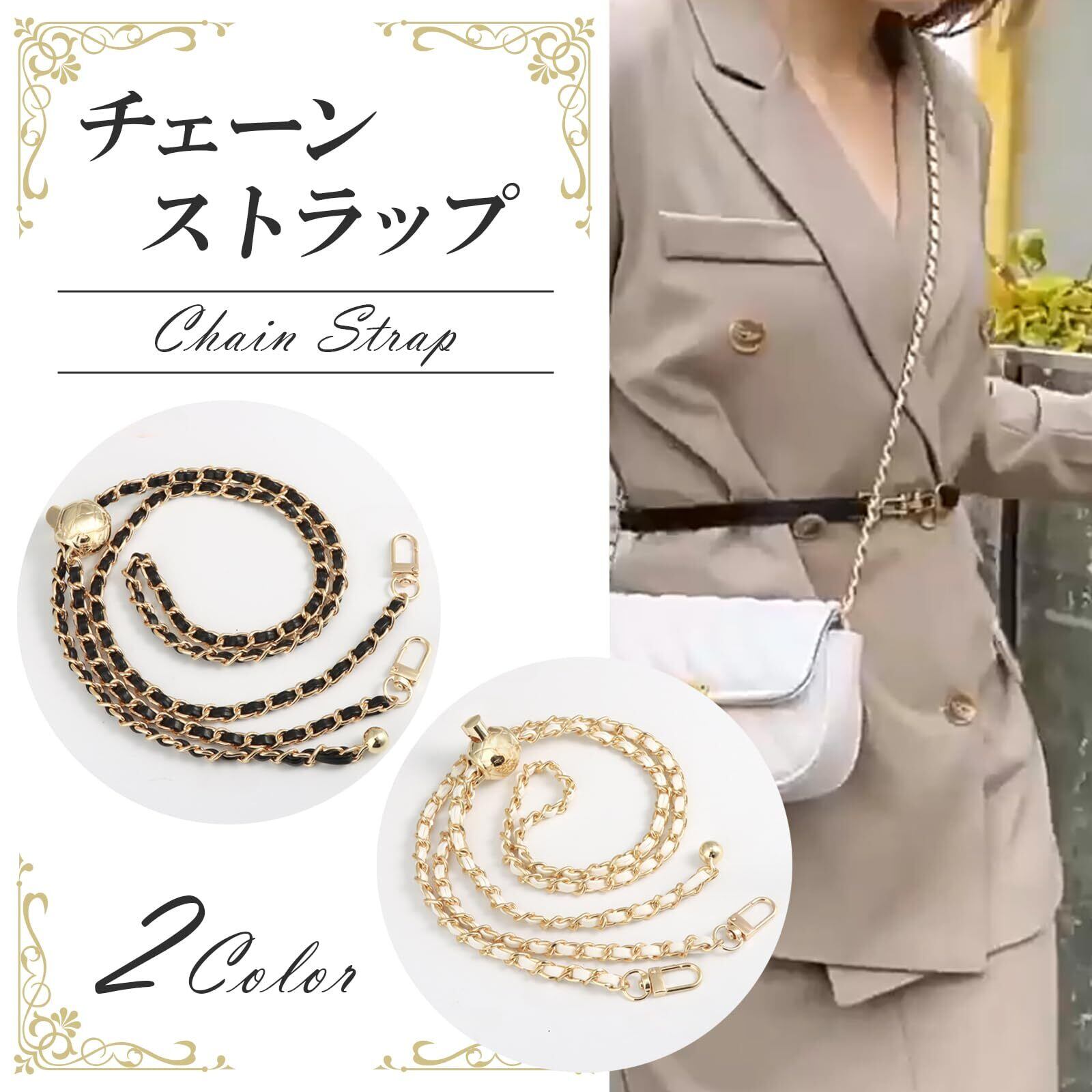 【外観】このショルダーストラップは、高品質のPUレザーと鮮やかなチェーンが組み合わさっています。上品で耐久性もあり、クロスボディバッグや、ポーチなどをよりエレガントに演出します。