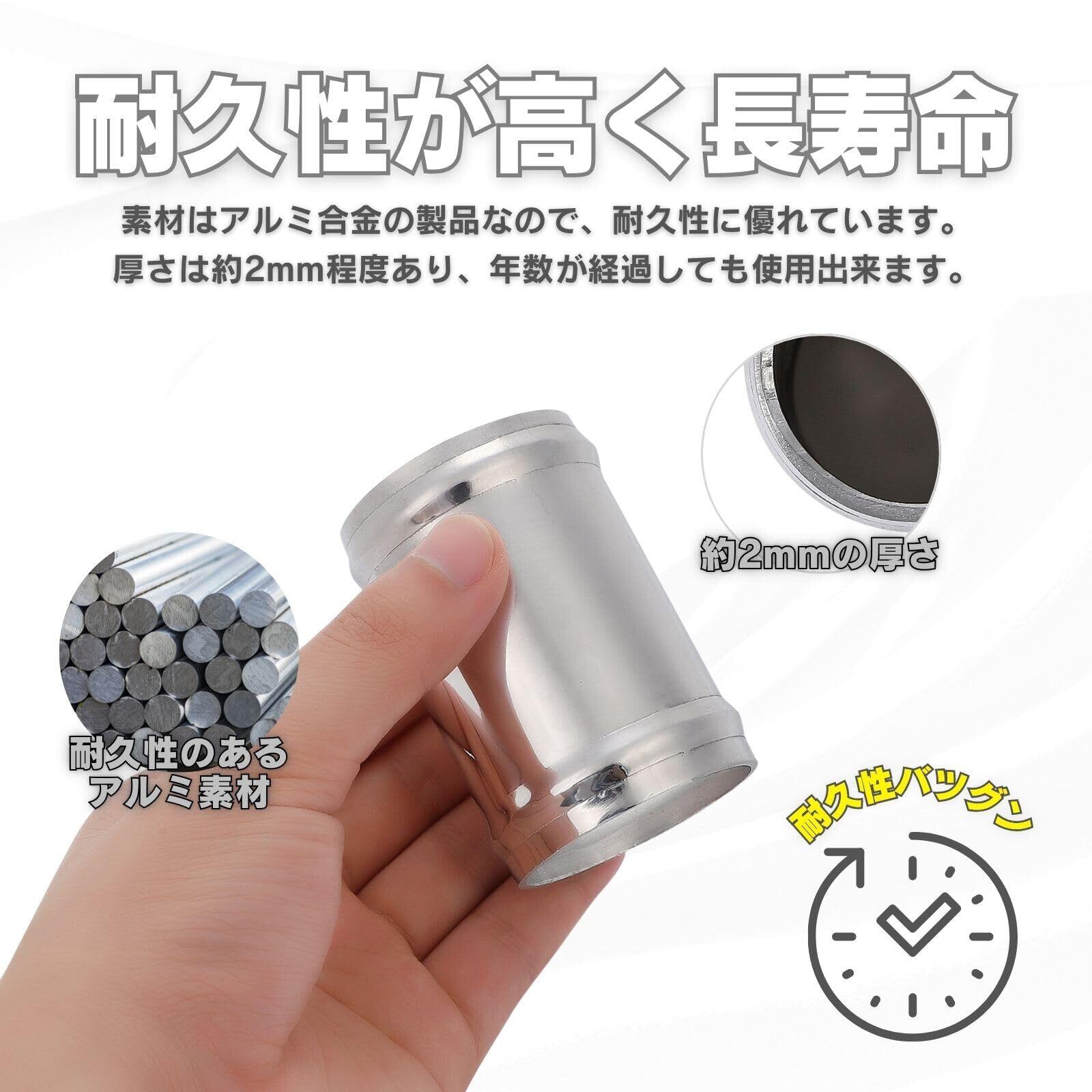 サクションパイプ、吸気配管、ターボ配管、ラジエター配管など、さまざまな配管の接続作業に最適なクランプ付きアルミパイプ ホースジョイントです。
