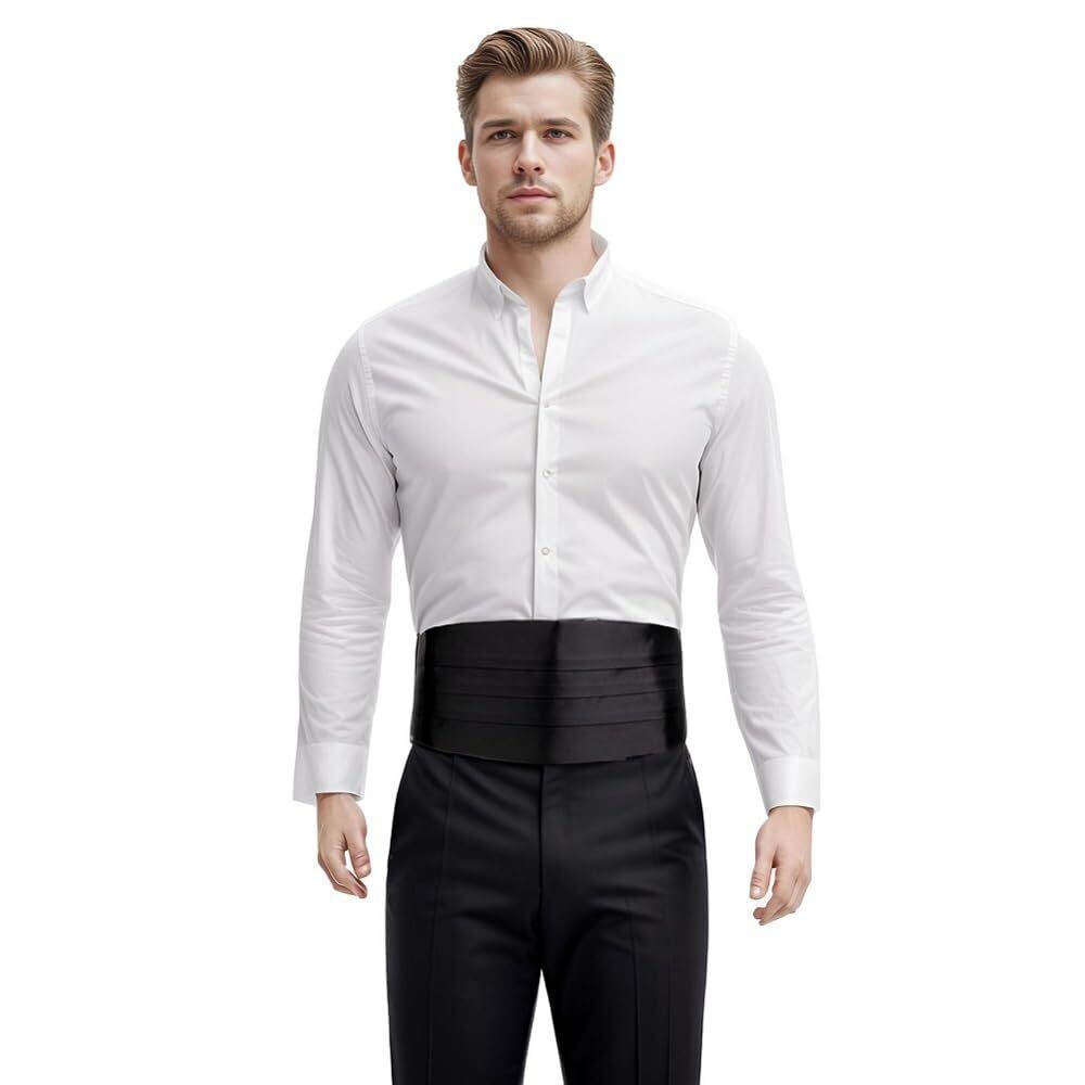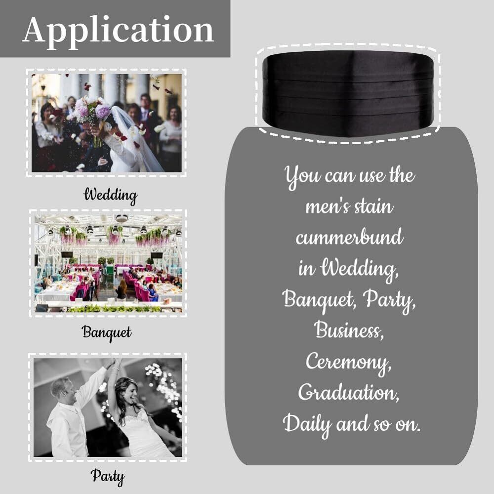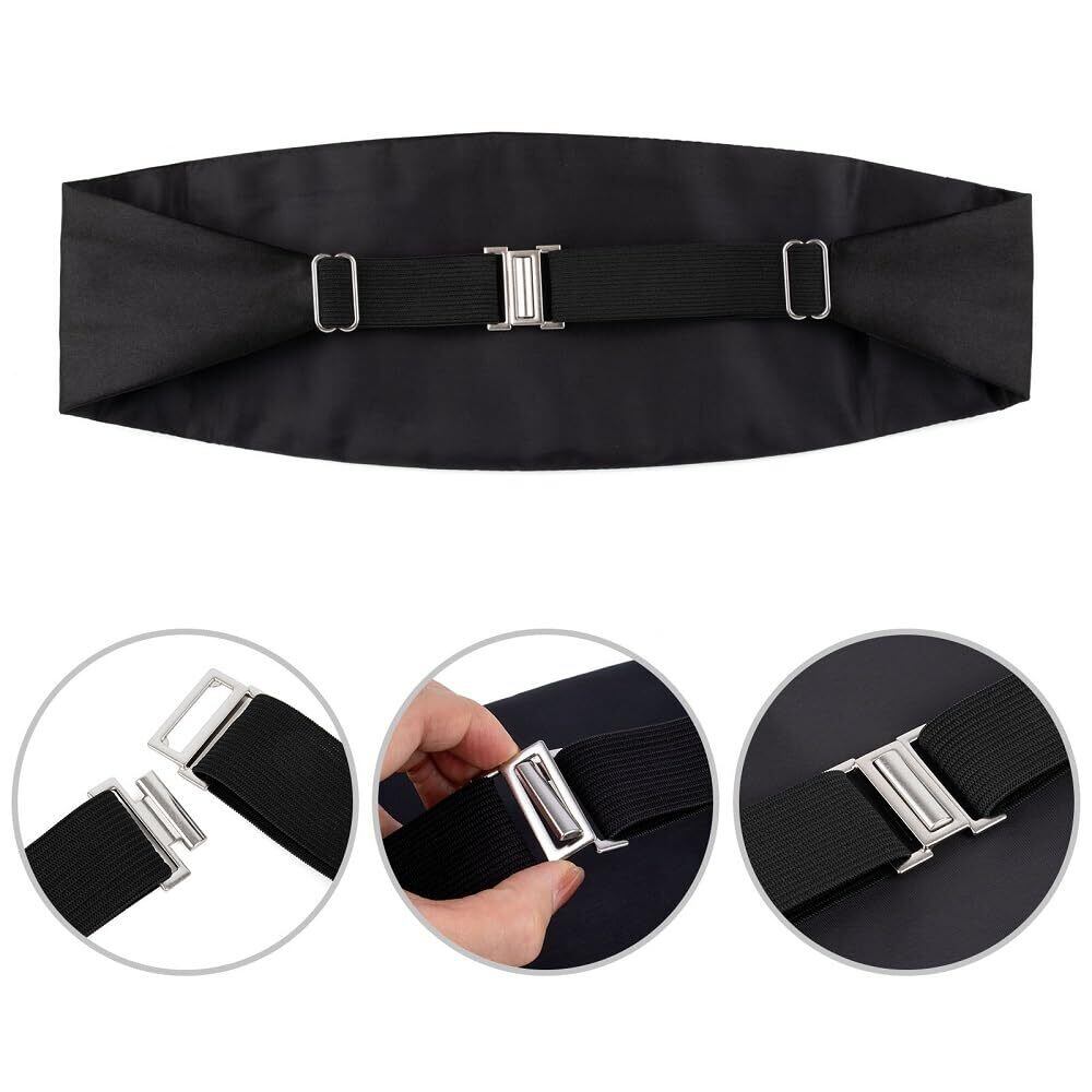 [トップタイ] カマーバンド メンズ フォーマル 弾性ベルト タキシードアクセサリー ブラックサテン 調節可能 ビジネス 結婚式 ウェイター バーテンダー