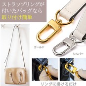 【高級感と耐久性のある本革性】牛革使用で耐久性にすぐれ、どんなバッグにも合わせやすい高級感のある仕様です。ストラップリング等の金具が掛けられる部分があれば、取り付けは簡単。ベルトの金具を引っかけるだけで装着完了です。