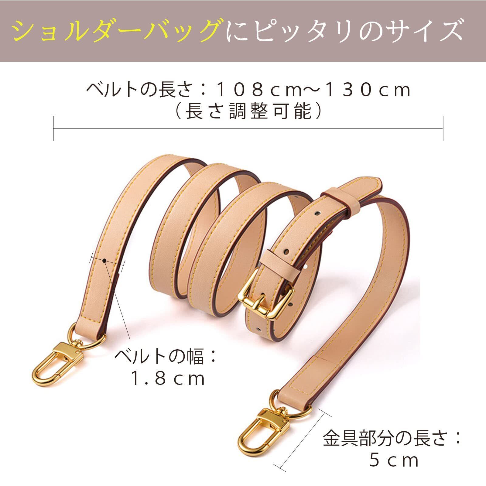 【幅1.8cm、長さは調整可能】ベルトの幅は1.8cmで、一般的なレディースバッグにちょうど良いサイズです。ベルトの長さは調整可能。バッグのデザインや、身長・年齢を問わずご使用いただけます。