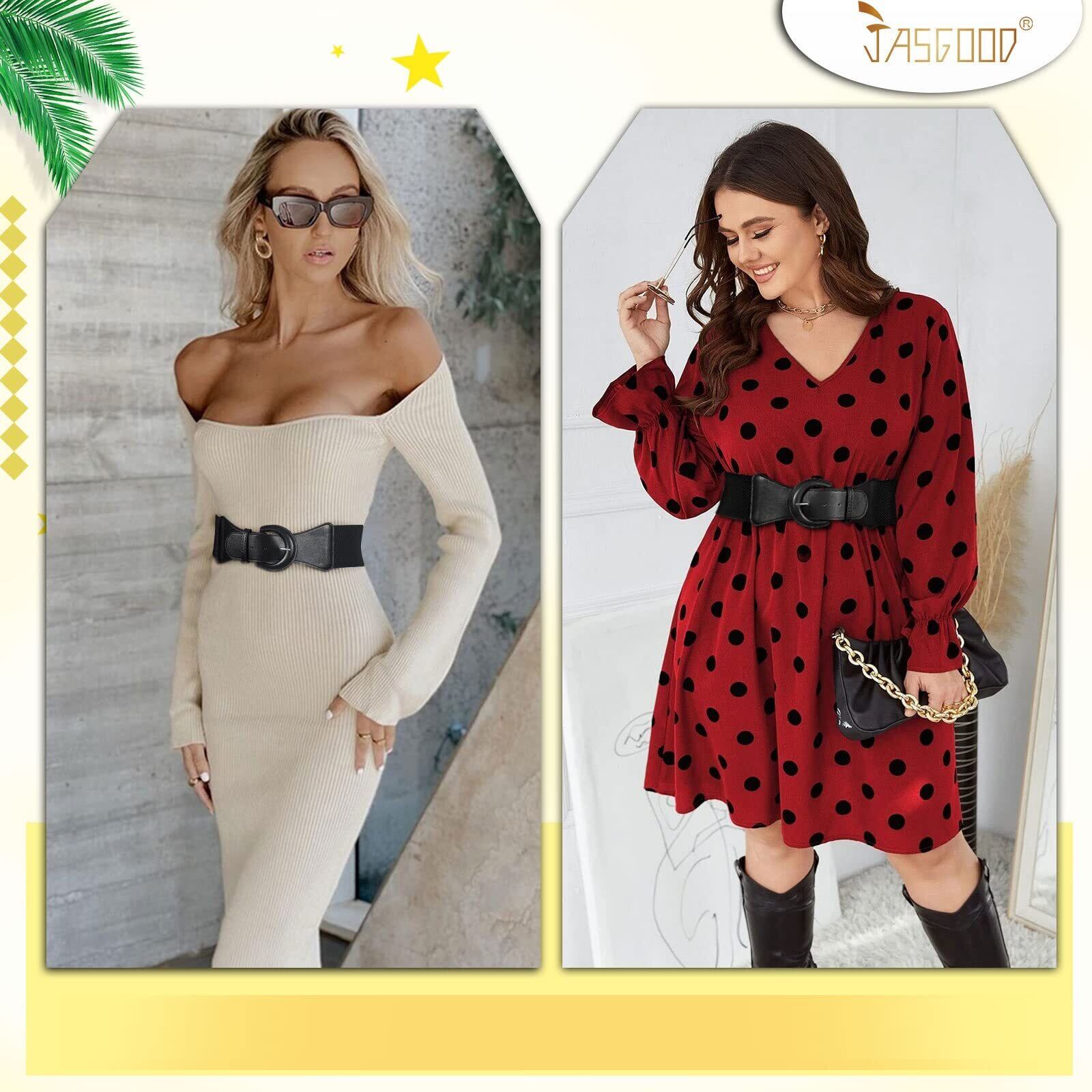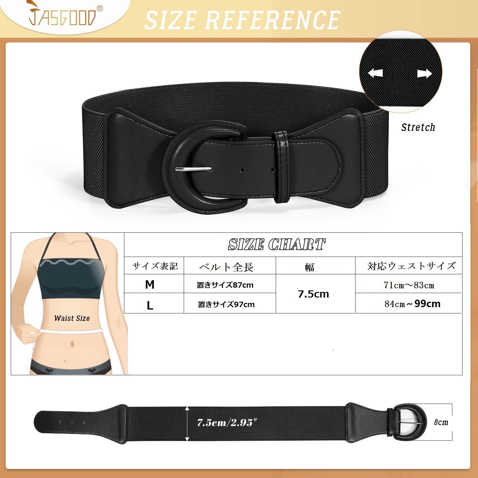 JASGOOD(ジャスグッド) 太ベルトレディース 幅広 幅7.5cm 太めウェストマーク 伸縮ありゴムベルト サッシュベルト 太いベルトワンピース ドレス ギフト