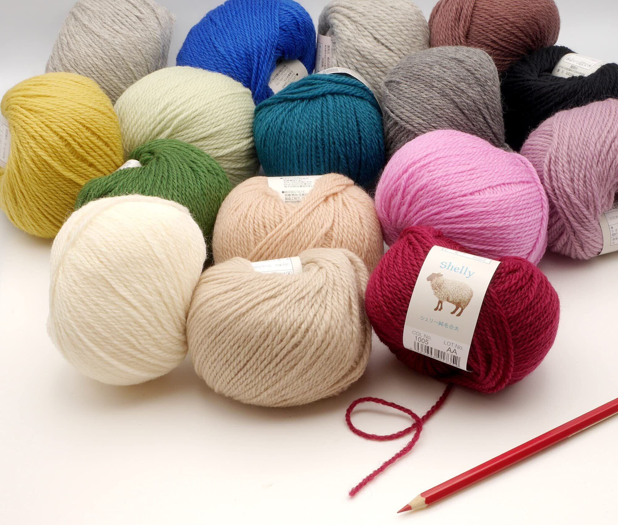 仕立:約30g 約84m素材:ウール100%使用針:棒針4~6号、かぎ針2/0~4/0標準ゲージ:21~22目、29~31段10玉セット
