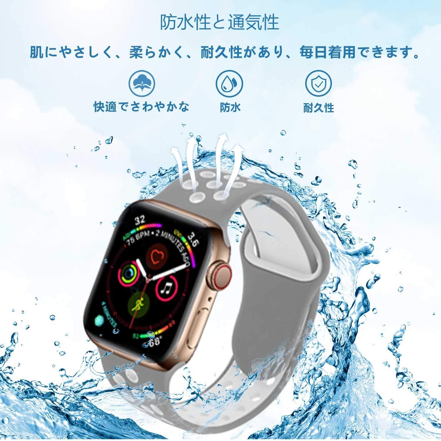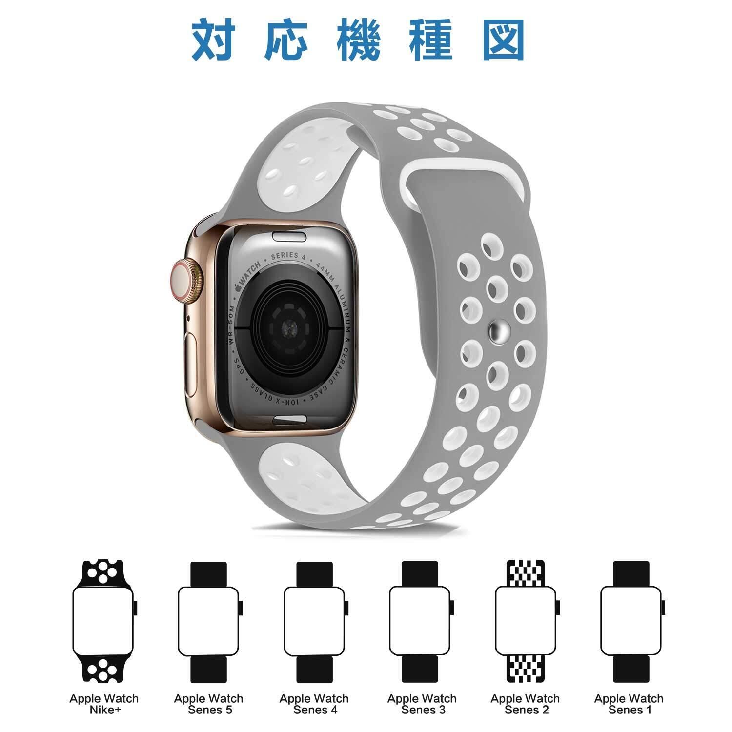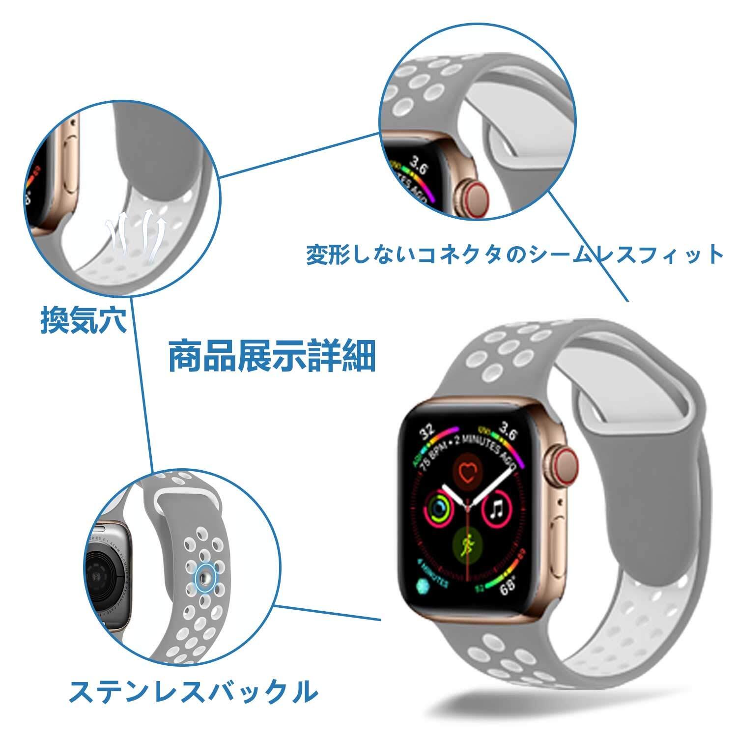 【新着商品】ZENGYQI コンパチブル Apple Watch バンド 38mm 42mm 40mm 44mm,ソフトシリコンバンド 通気性 スポーツシリコンストラップリストバンド交換バンドリストバンド iWatch series SE/8/7/6/5/4/3/2/1に対応 (42mm/44mm/45mm/49mm, グレー/白)