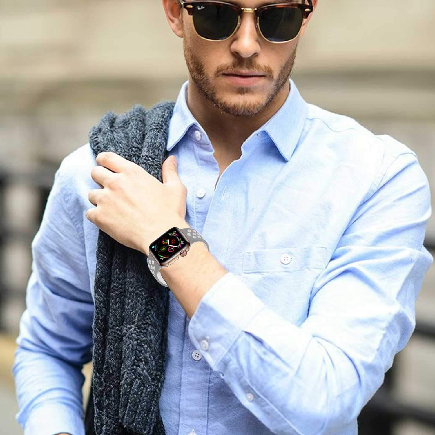 ZENGYQI コンパチブル Apple Watch バンド 38mm 42mm 40mm 44mm,ソフトシリコンバンド 通気性 スポーツシリコンストラップリストバンド交換バンドリストバンド iWatch series SE/8/7/6/5/4/3/2/1に対応 (42mm/44mm/45mm/49mm, グレー/白)