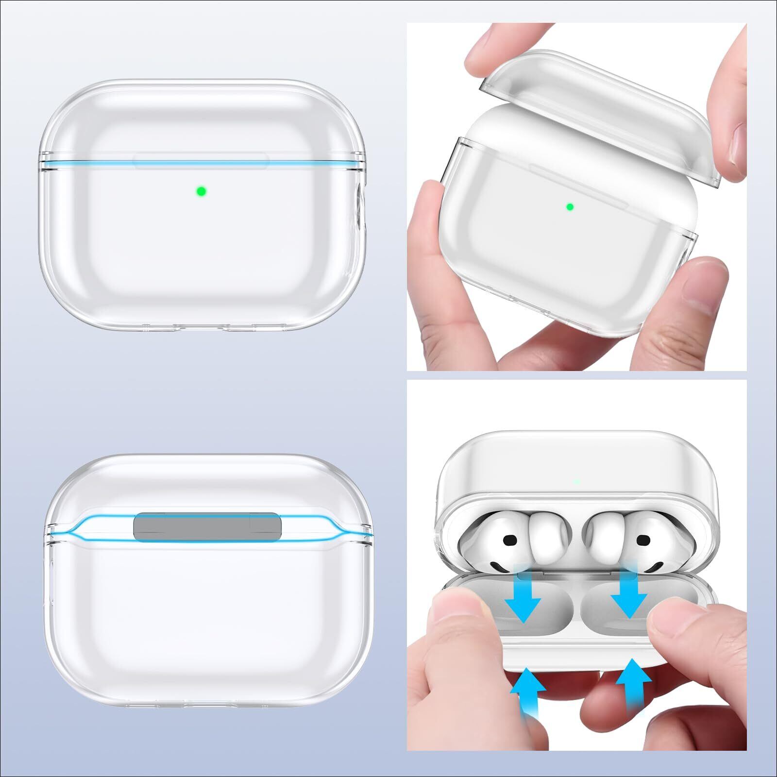 【在庫セール】Seefox Airpods pro 3 ケース【2025年発売】Airpods pro 第三世代 ケース TPU素材 分離式 可視LEDライト 装着充電可能 エアーポッズ プロ 3 カバー 軽量 全面保護 耐衝撃 防塵 キズ防止 カラビナ付き Airpods pro3 対応 保護カバー (クリア)