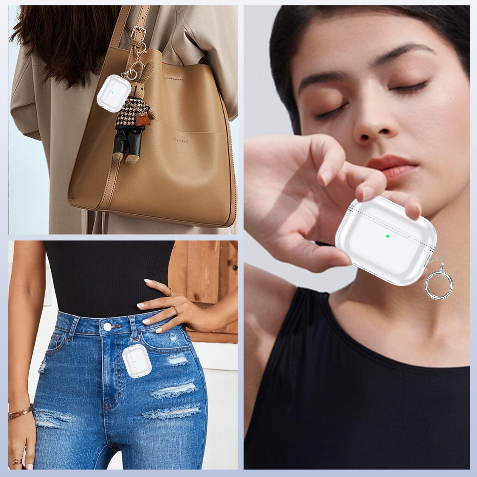 Seefox Airpods pro 3 ケース【2025年発売】Airpods pro 第三世代 ケース TPU素材 分離式 可視LEDライト 装着充電可能 エアーポッズ プロ 3 カバー 軽量 全面保護 耐衝撃 防塵 キズ防止 カラビナ付き Airpods pro3 対応 保護カバー (クリア)