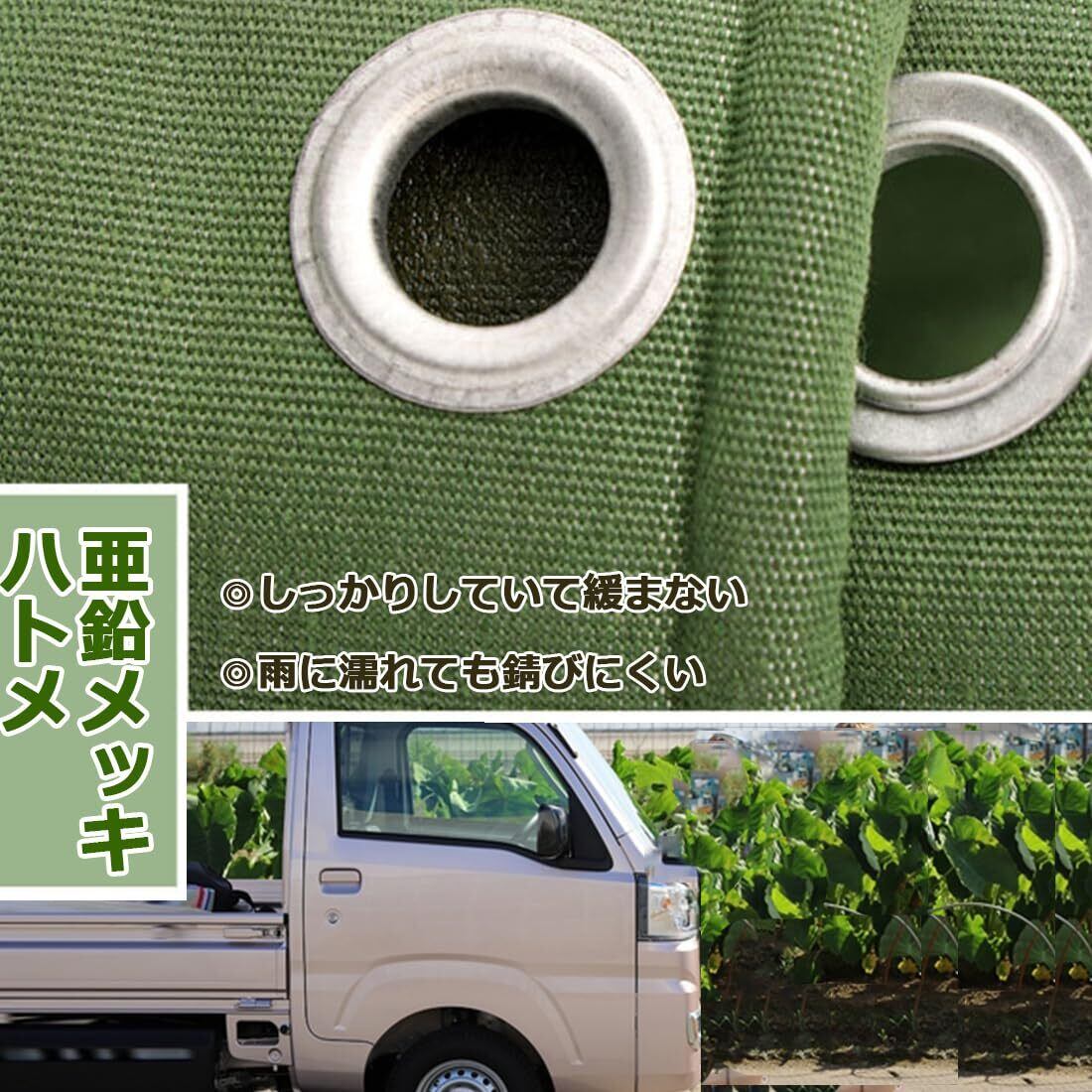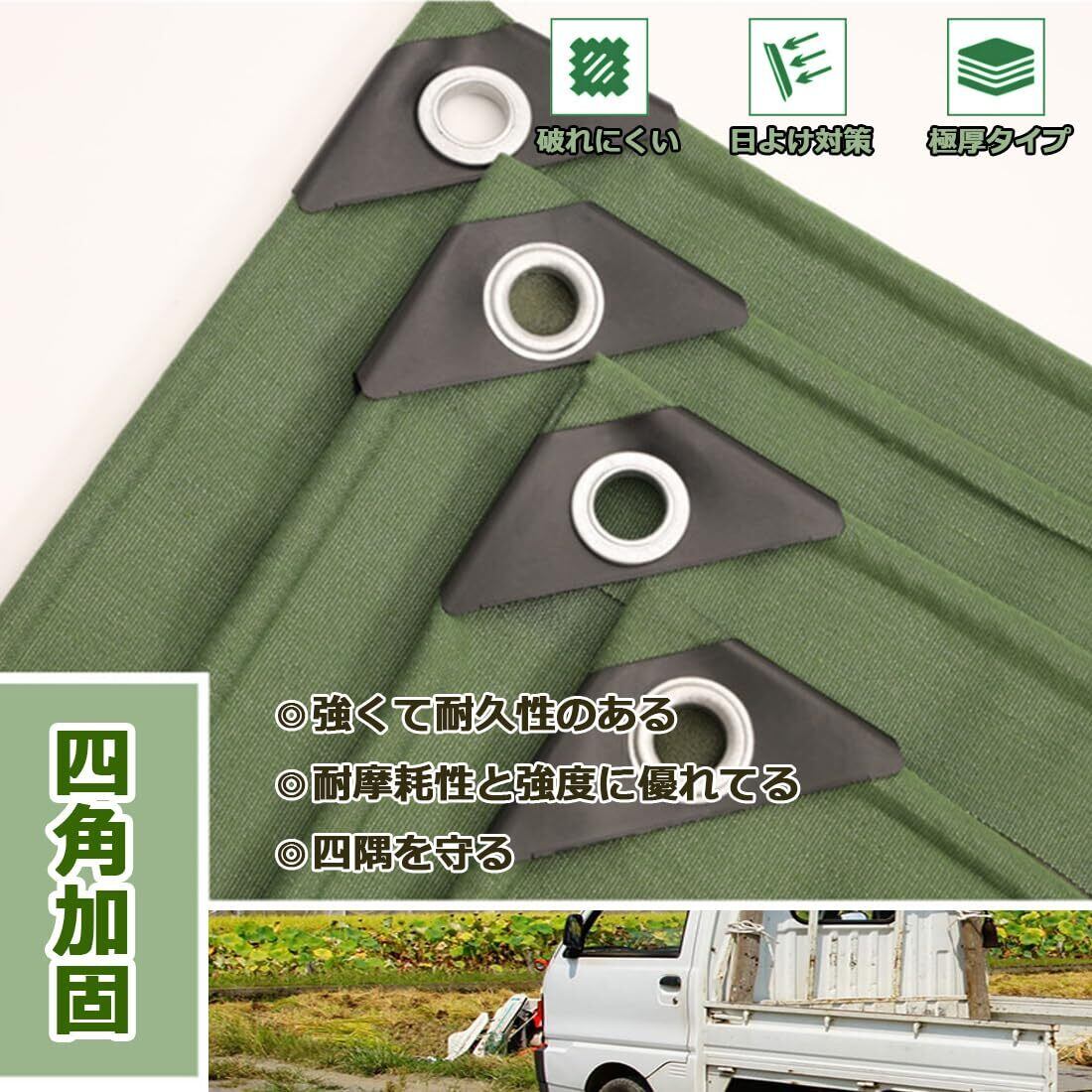 【丈夫な素材】表面には高密度帆布生地を使用し、裏面には防水性の高いPVC素材をしています。日光や雨風に強くオールシーズンご使用いただけます。また、シートの4辺にナイロンコードを内蔵し、強度を高めています。防錆加工済みのハトメがあり、しっかり固定され、雨に濡れても錆びません。