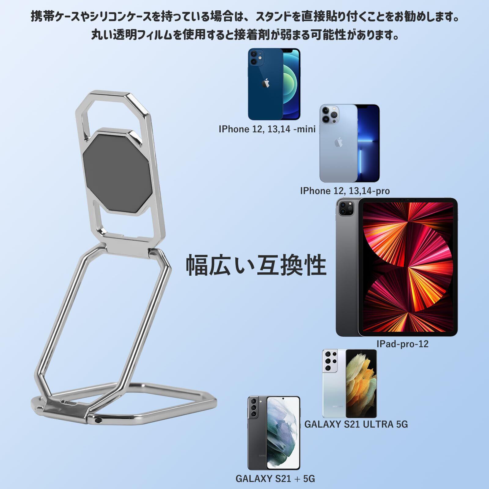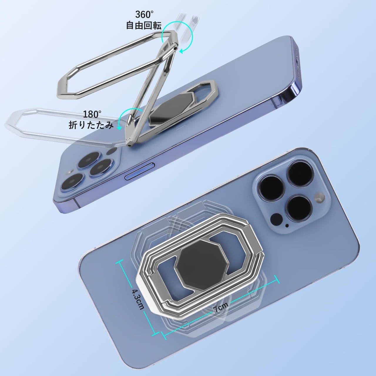 スマホリング 携帯リング リング ホルダー 折りたたみ式 スタンド機能 360°回転 薄型 滑り止め コンパクト耐久性 貼り替え可能 落下防止 粘着テープ式しっかり固定式 バンカーリング 携帯電話 iPhone/Android/switch/kindle/ipadタブレット など各種機器対応(シルバー)