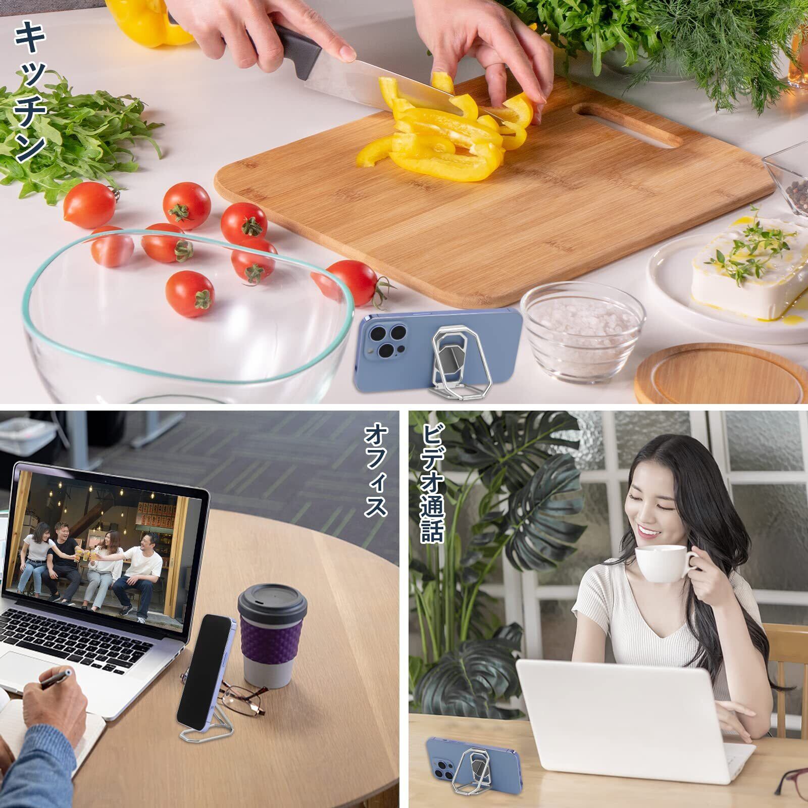 【3層構造と折りたたみの創造性】バンカーリング は3層デザインは無限の可能性を提供します。 想像力を駆使して、さまざまな折り畳み方法を見つけたり、机、キッチンキャビネット、ベッドサイドテーブルなど、さまざまな場面に最適な折り畳みを見つけたりできます。 このデスクトップフォンスタンドを自宅に置くと、料理をしながらレシピを見たり、テレビやLINEを見たりすることができます。(ホルダーを使用する際の安定性を高めるために、ステントはできるだけ三角形状にする)