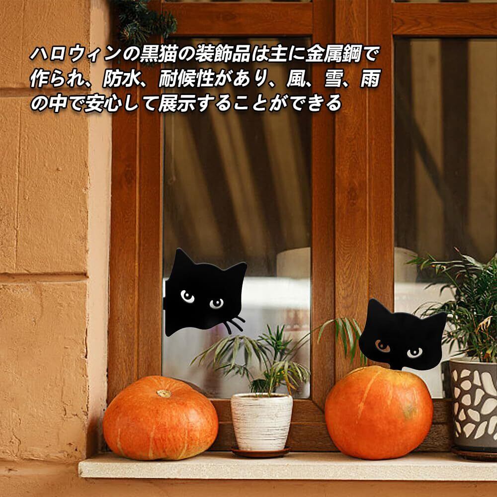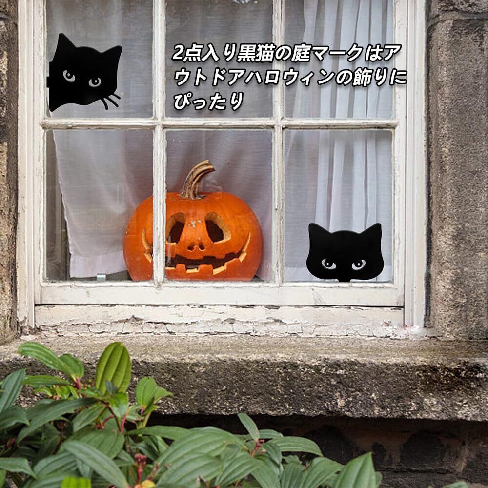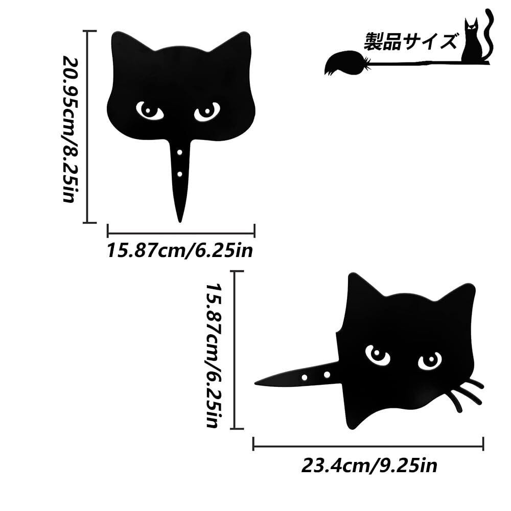 猫 黒猫 オブジェ ネコ ガーデンオーナメント ラティス フェンス トレリス 園芸 ガーデニング アイアンオブジェ ウェルカムプレート装飾 2枚組 (黒)