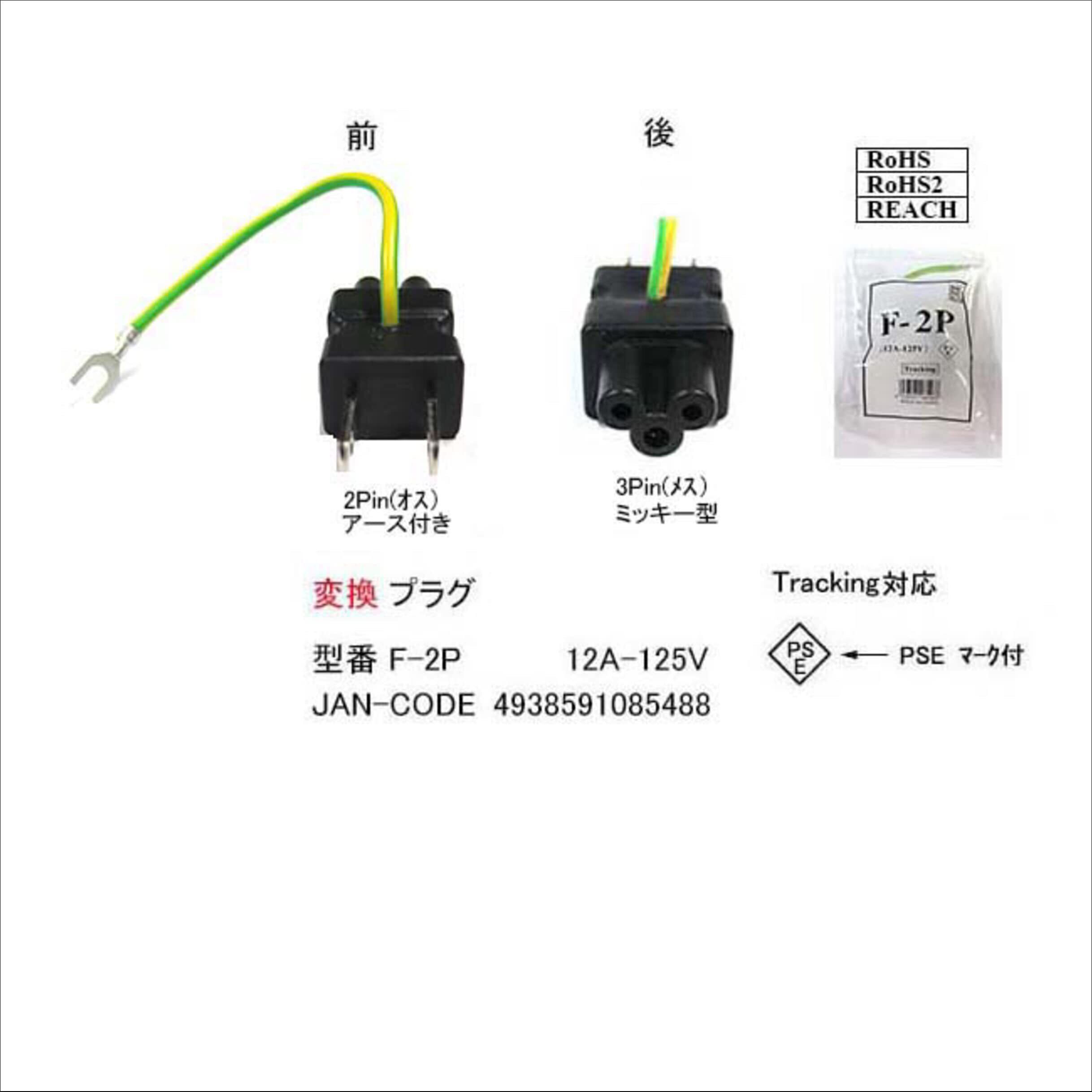 電源変換プラグ(2P/オス⇔3Pin/ミッキータイプ/メス)(EP-F-2P)