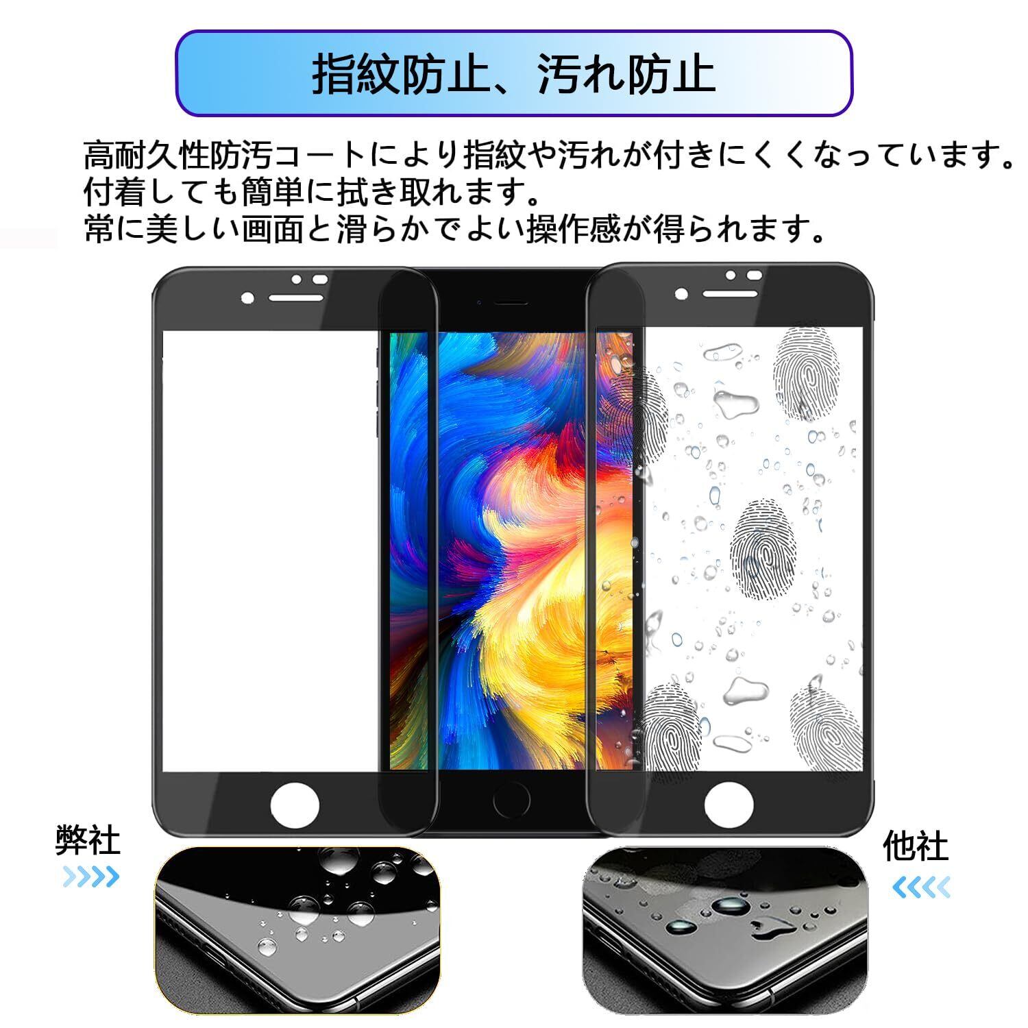【 極上のタッチ感・指紋防止】アイフォンSE2 フィルム 厚さ0.26mm極薄ガラスを採用、iPhone本来のタッチ感で、快適な操作感を実現します。撥油コーティング加工、汚れや指紋がついても、拭き取るだけでキレイになれます。常に美しい画面と滑らかな操作感が得られます。