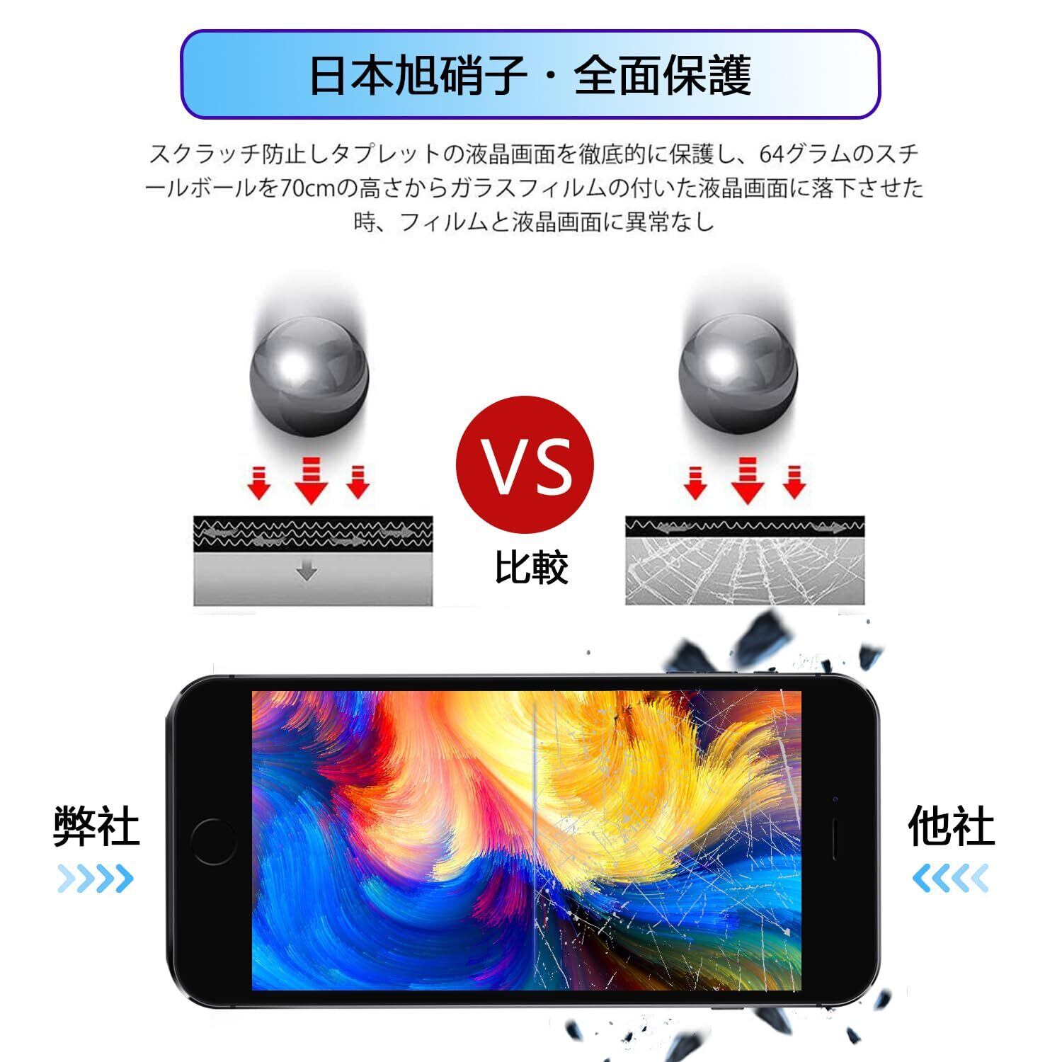 【硬度9H、保護力3倍Up】いphoneSE2 強化ガラスフィルム 一般的な製品に比べ3倍以上の保護力があり、画面の破損を最低限まで抑え、衝撃を受けても割れにくい。優れた耐スクラッチ性能:硬度9Hのフィルムが日常的なスクラッチから守り、傷を付きにくくします。