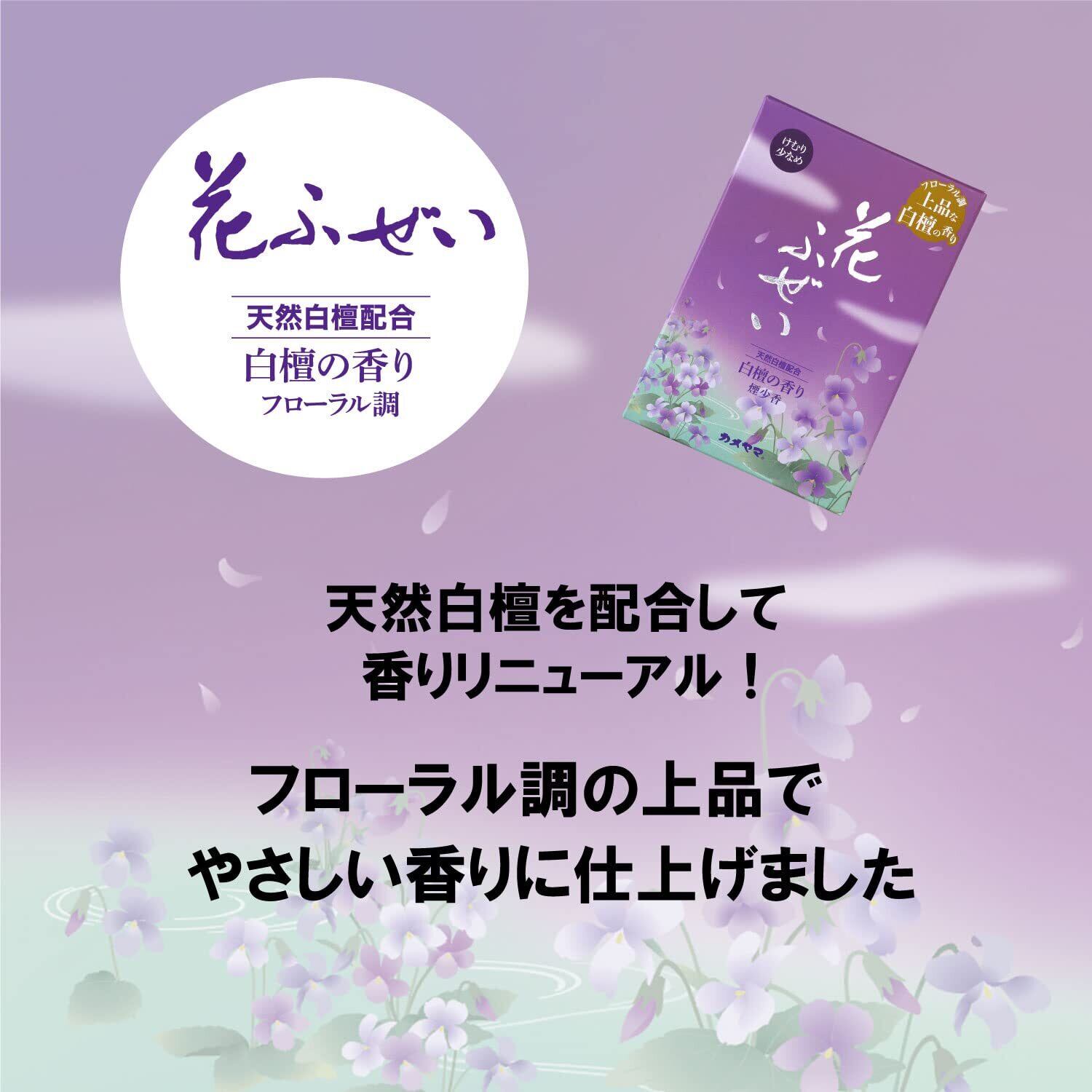 カメヤマ 花ふぜい 紫 煙少香 約100g 約230本 白檀の香り お線香 お香煙少ない