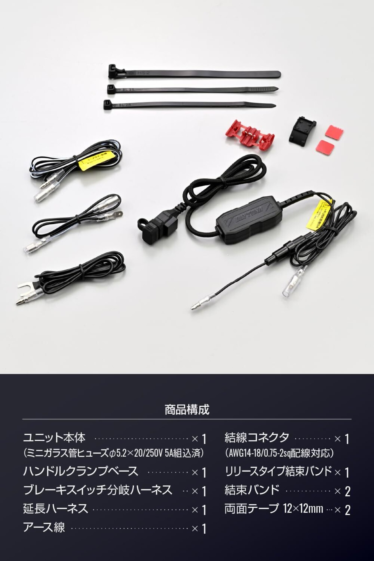【仕様2】ブレーキスイッチに接続するだけの簡単接続。メインキー連動だから、バッテリーあがりの原因となる待機電流消費がありません。