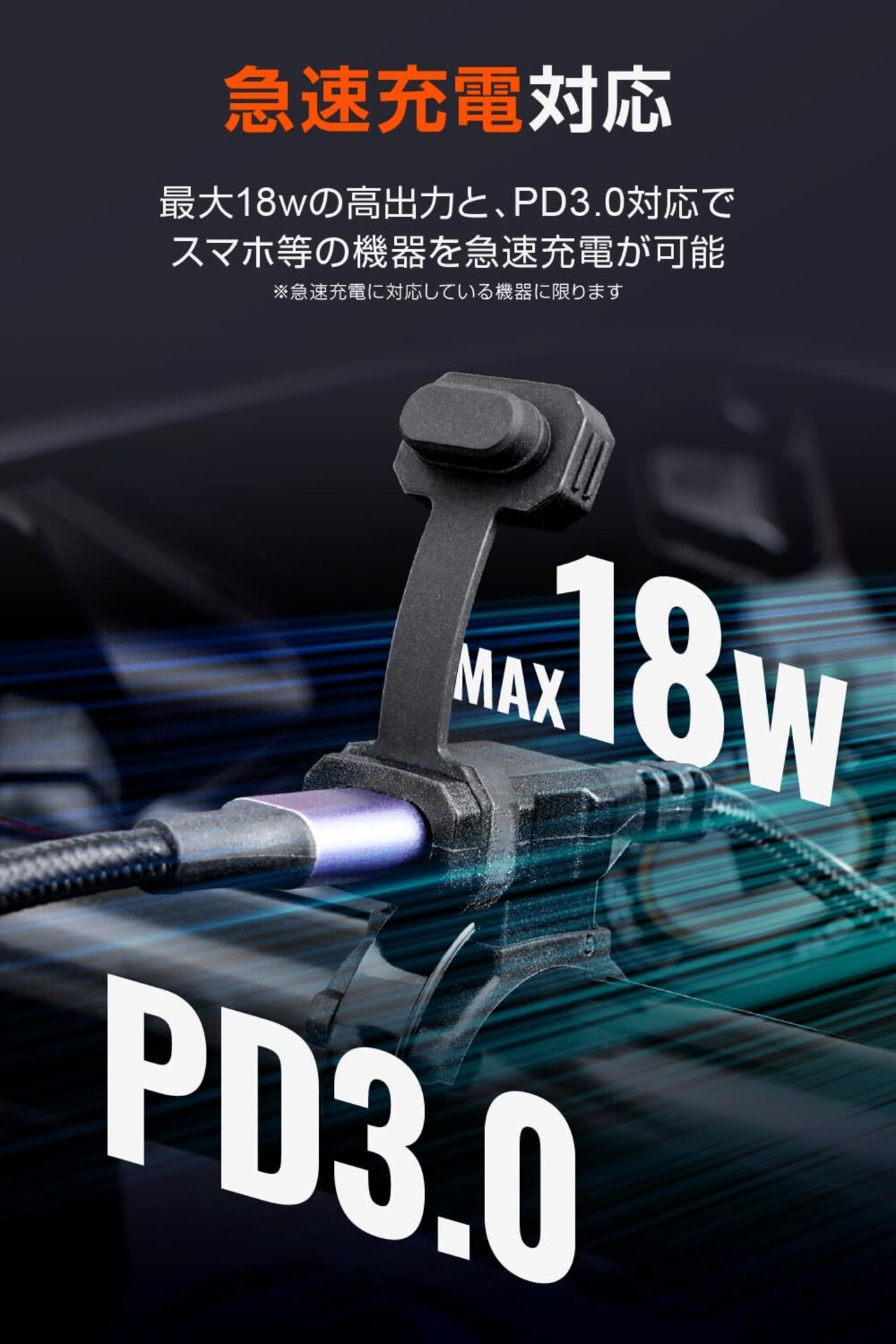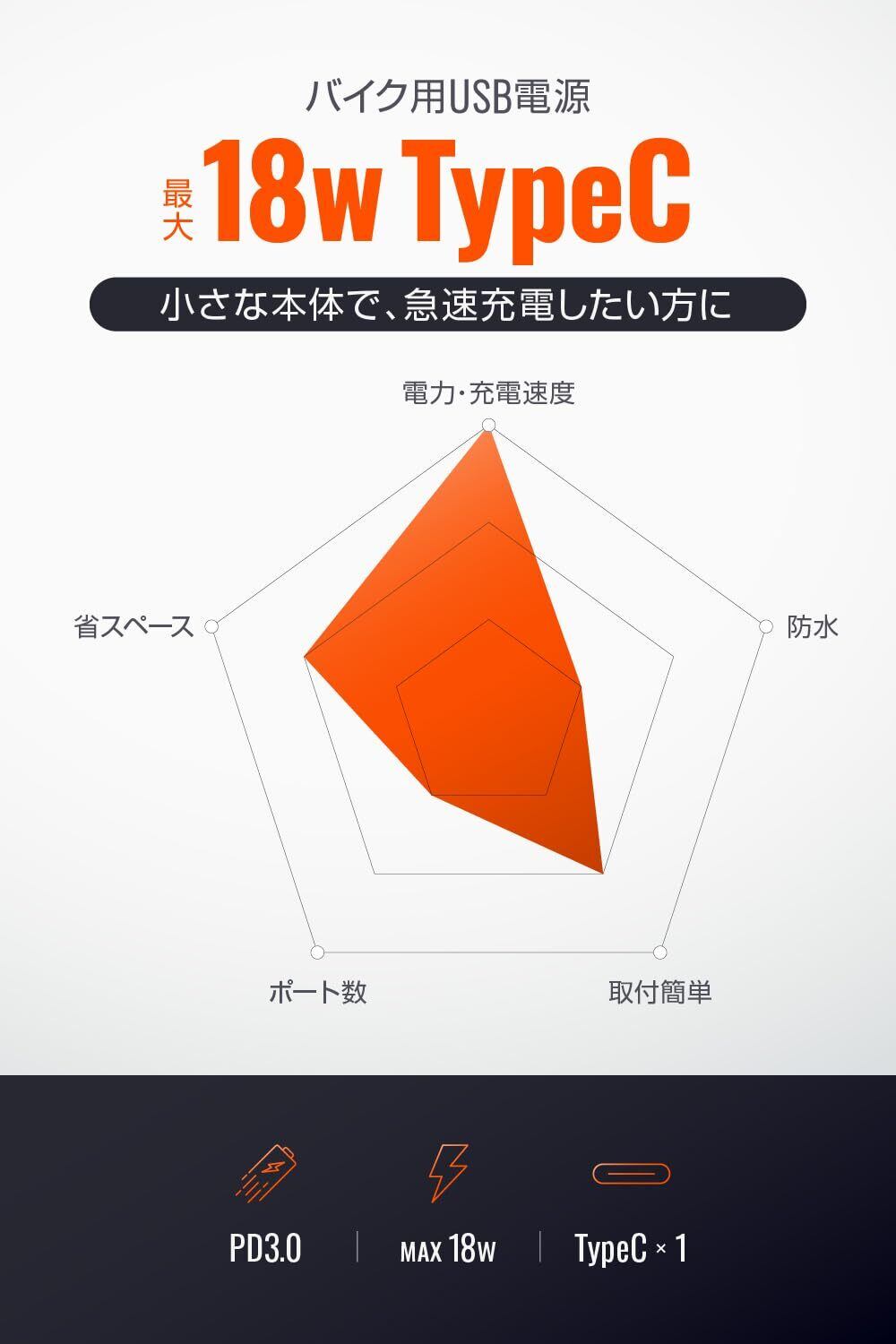 【仕様1】 PD(パワーデリバリー)3.0対応で、スマートフォンの急速充電が可能。MAX18Wの高出力。