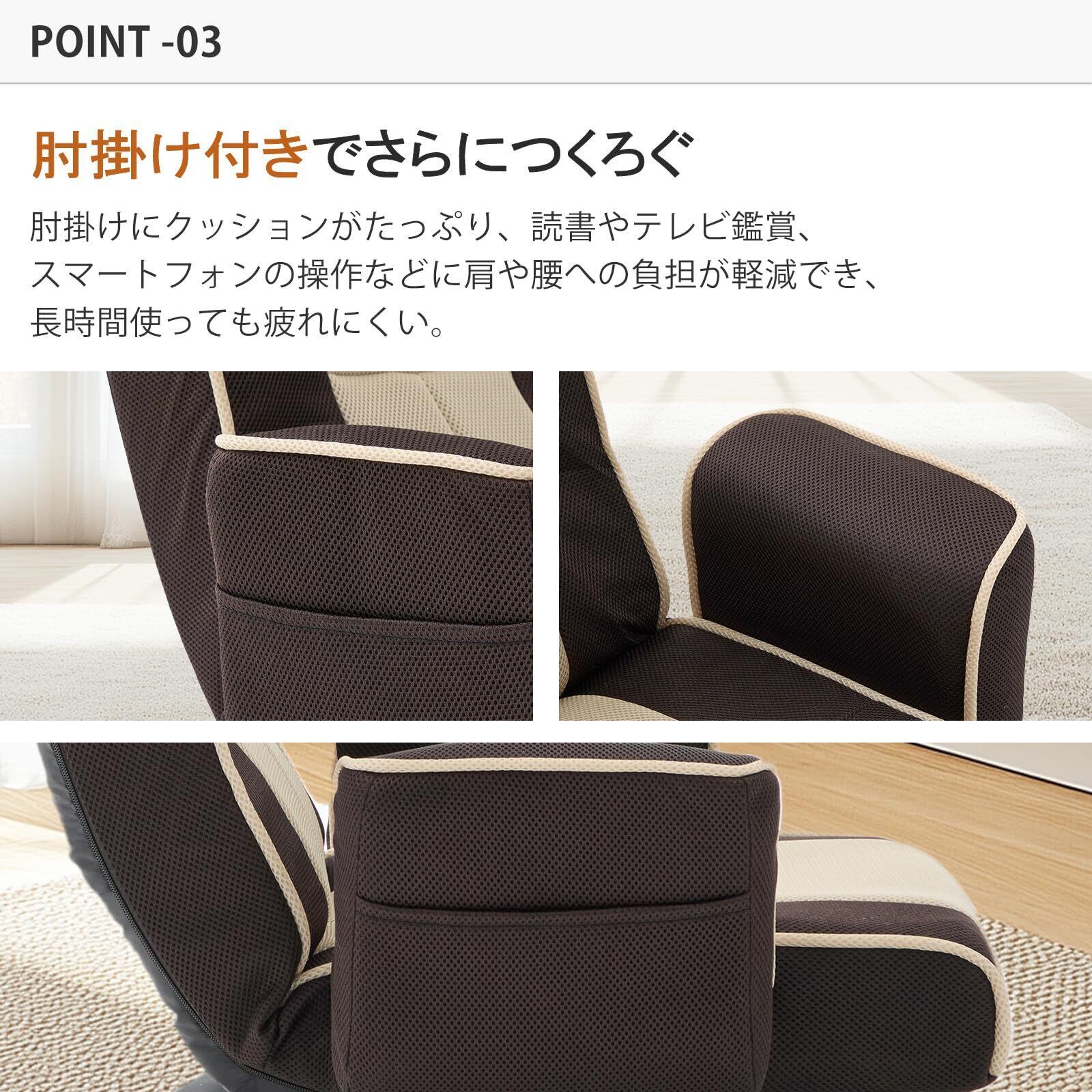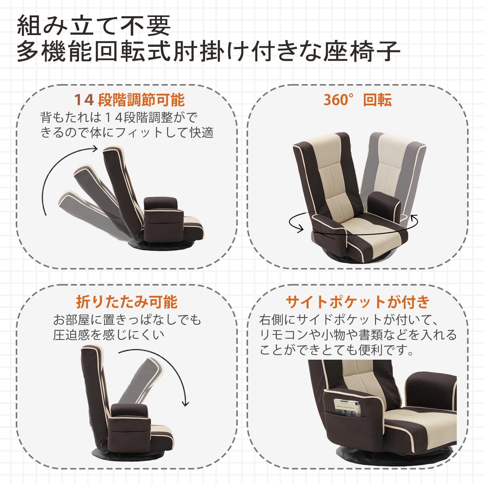 座椅子 ひじ掛け付き 回転 リクライニング ざいす ソファー ハイバック 14段階 背もたれ コンパクト サイトポケット付き 折りたたみ可能 腰が痛くならない 収納やすい 組立不要 メッシュ生地 フロアチェア 簡易ベッド 一人暮らし 座椅子ソファー 1人掛け 新生活 母の日 父の日 誕生日 プレゼント ギフト