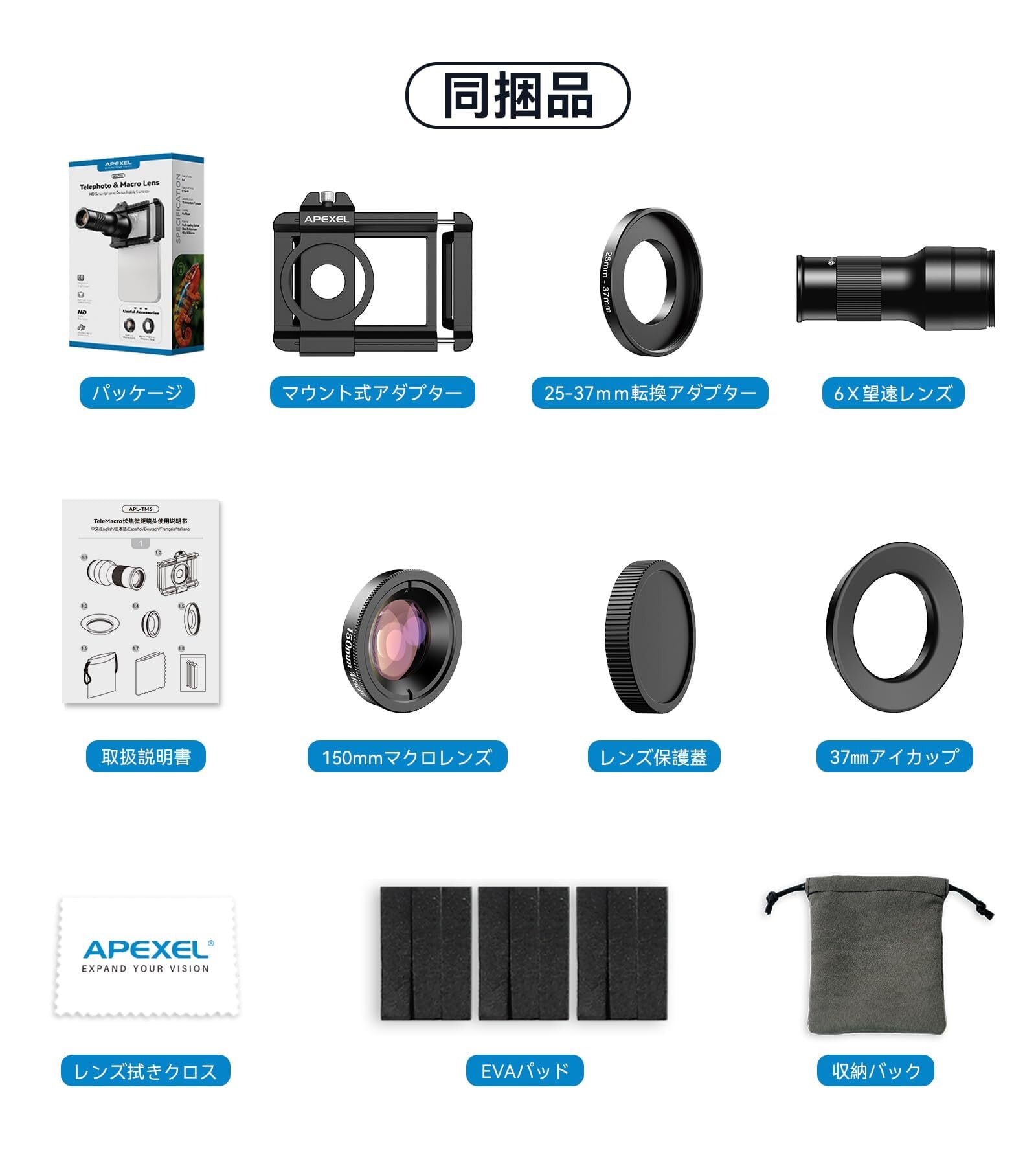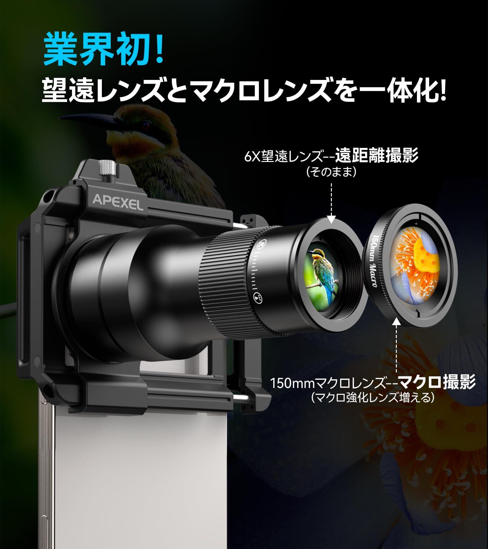 【数量限定】【2025年新版】 APEXEL 望遠とマクロ一体化スマホレンズ 6Xスマホ望遠レンズ 150㎜スマホマクロレンズ 合金製耐久性高い携帯望遠レンズ HD光学レンズ 映像写し望遠鏡 単眼鏡 遠距離撮影用/ディティールマクロ撮影用 アイフォン望遠レンズ スマホ用望遠レンズ 携帯マクロレンズ(TM6)