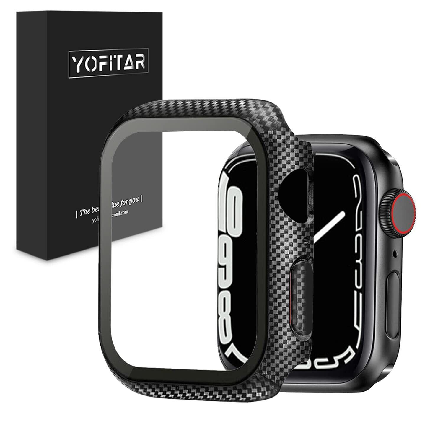 for Apple Watch 9/8/7 ケース 41mm 45mm 適用 600Dアラミド繊維 カーボン風 保護カバー 軽量 極薄 Apple Watchガラスフィルム付き 一体型 9H硬度 傷つきにくい (45mm、ブラック)