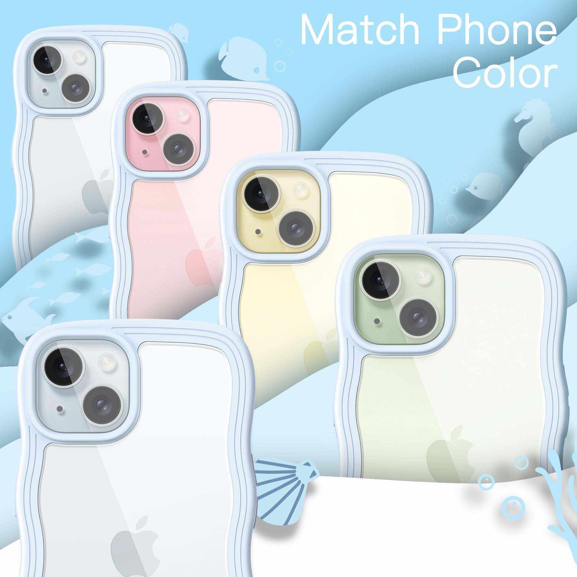 JETech iPhone 15 6.1インチ用 かわいい ケース 波状フレーム うねうね 耐衝撃 スマホカバー 女性用 女子向け クリア ハードPCバック (ブルー)