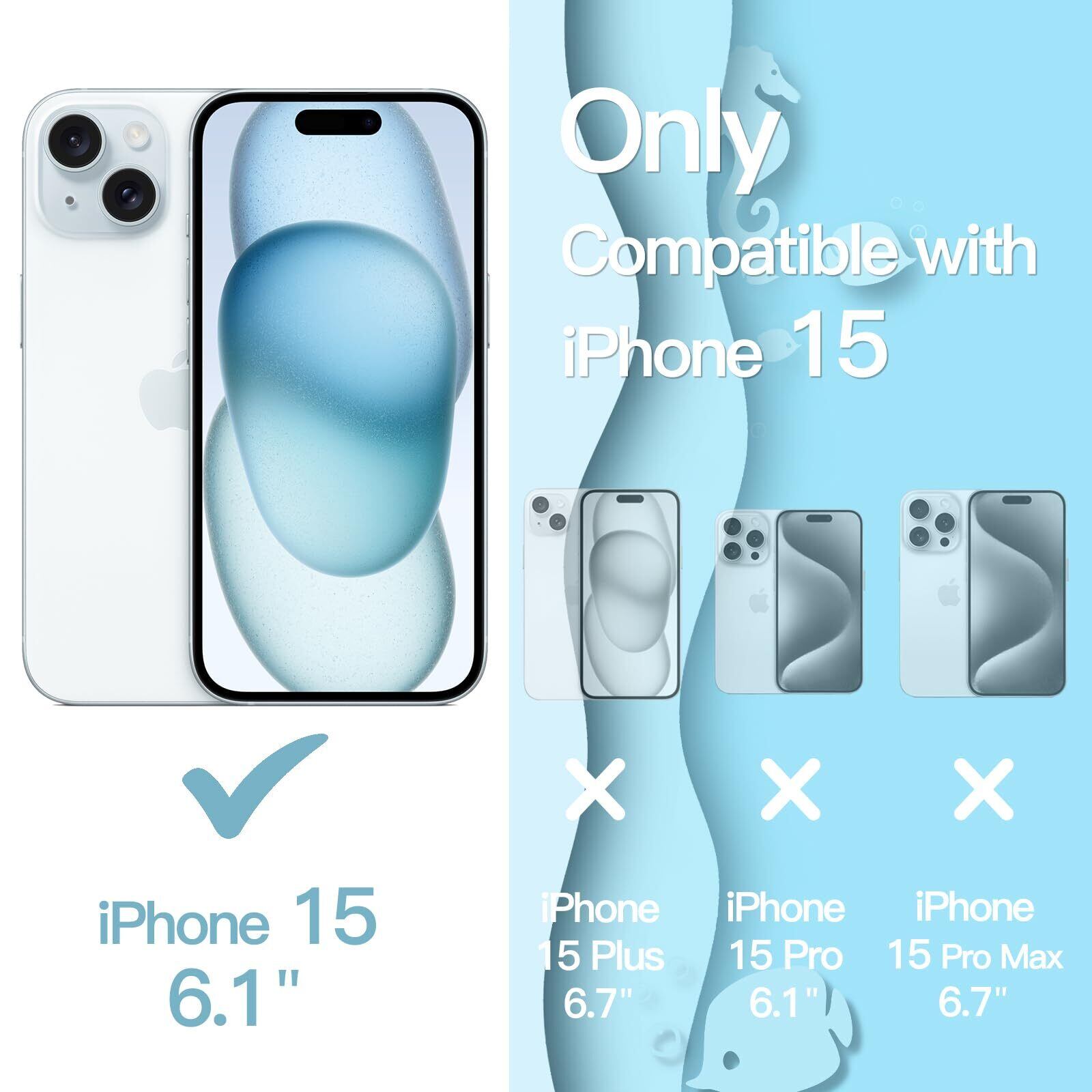 [互換性] iPhone 15 6.1インチ専用に設計されています。購入する前に携帯電話のモデルを再確認してください。さらに、黄ばみ防止の背面は超透明で、携帯電話の絶妙なロゴを美しく見せます。 使用禁止 iPhone 15 Plus